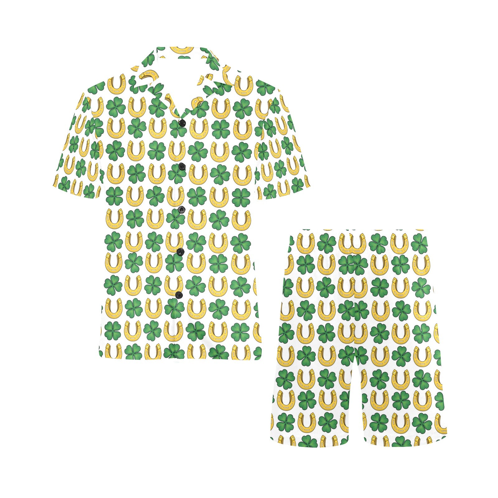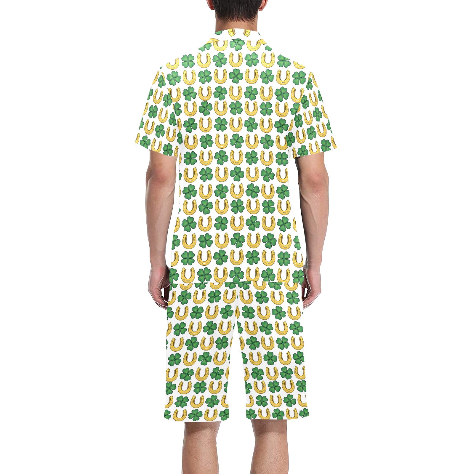 Horseshoes Pattern Print Design 04 Men's V-Neck Short Pajama Set