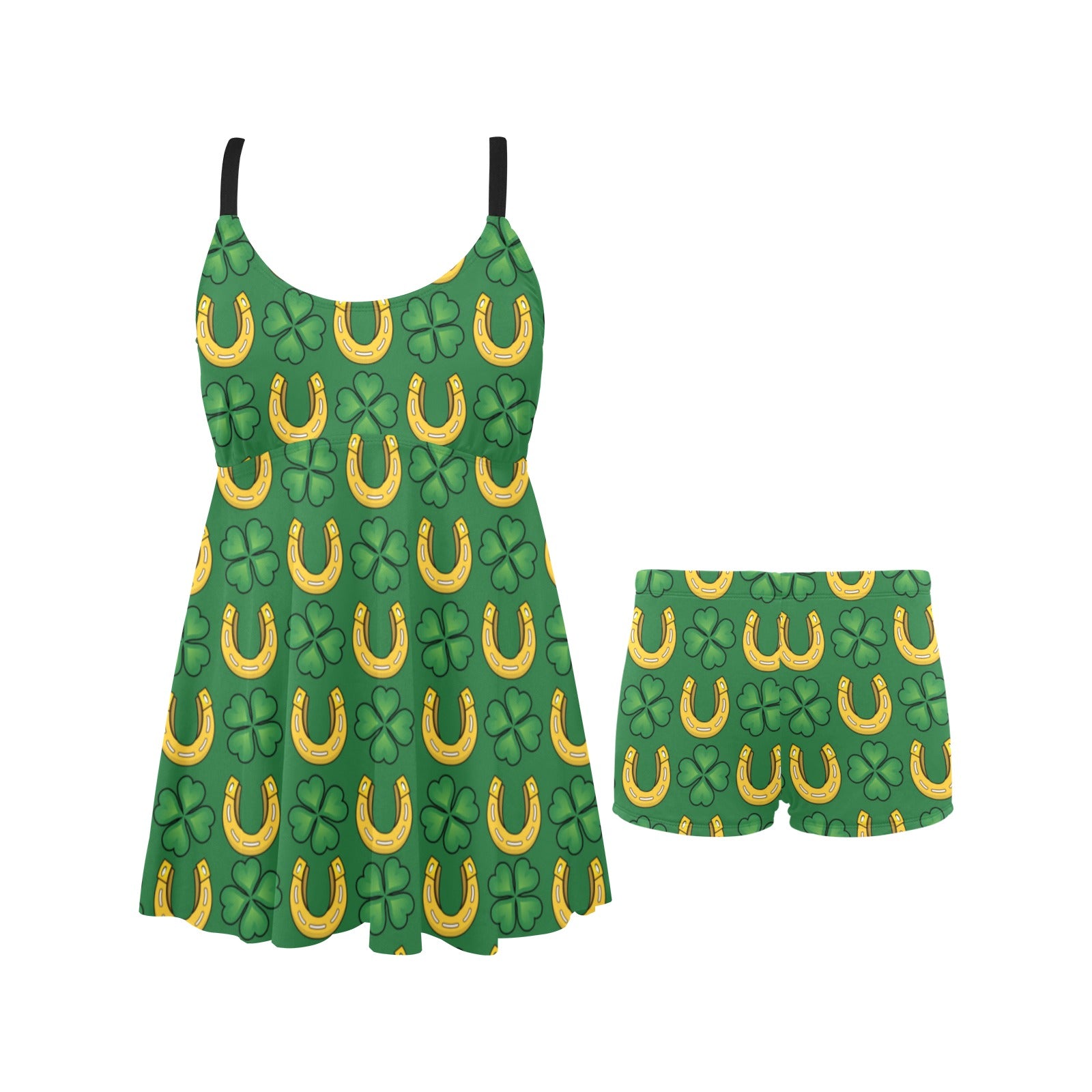 Horseshoes Pattern Print Design 05 Chest Sexy Pleated Two Piece Swim Dress