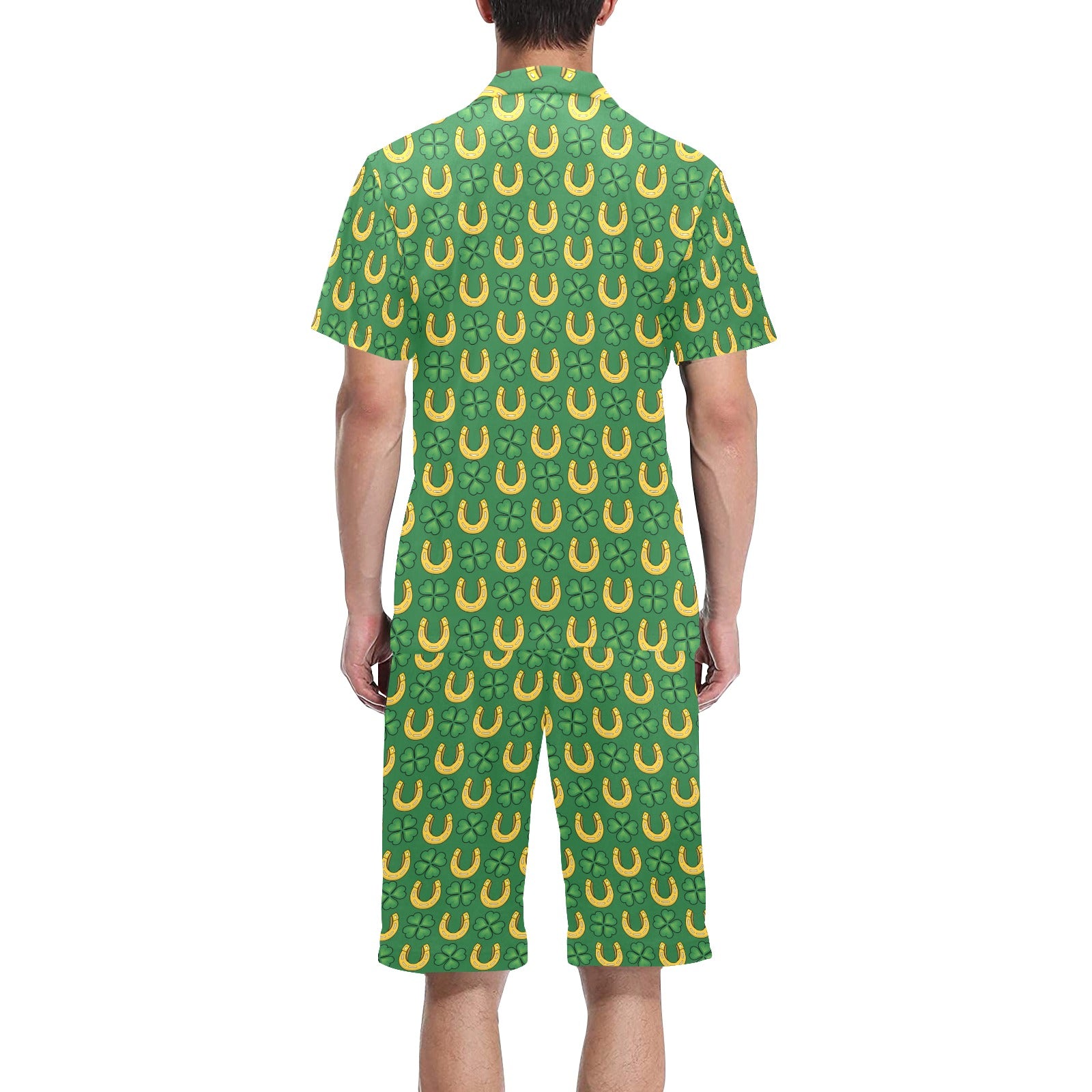 Horseshoes Pattern Print Design 05 Men's V-Neck Short Pajama Set