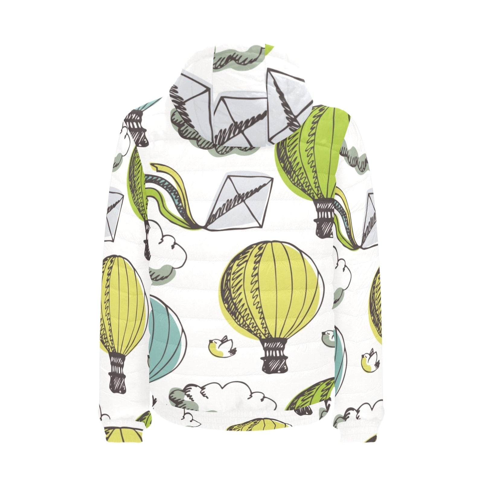 Hot Air Balloon Bird Cloud Pattern Men's Padded Hooded Jacket