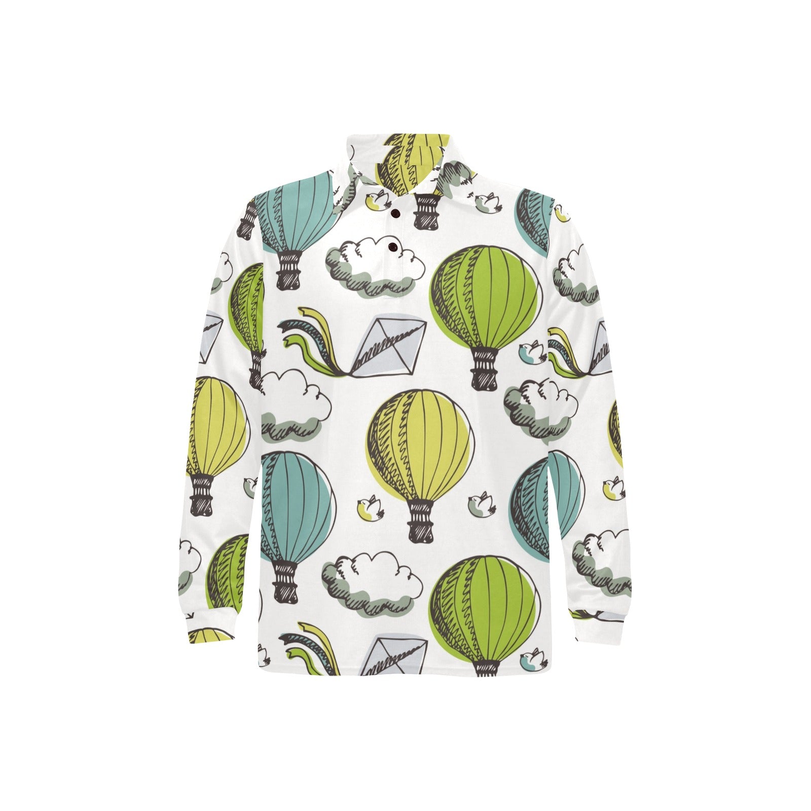 Hot Air Balloon Bird Cloud Pattern Men's Long Sleeve Polo Shirt