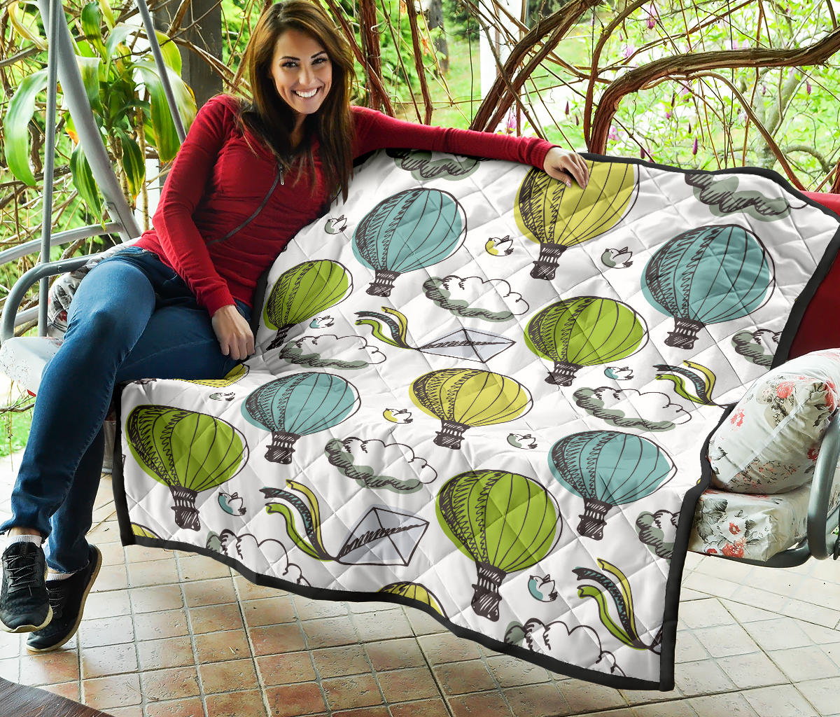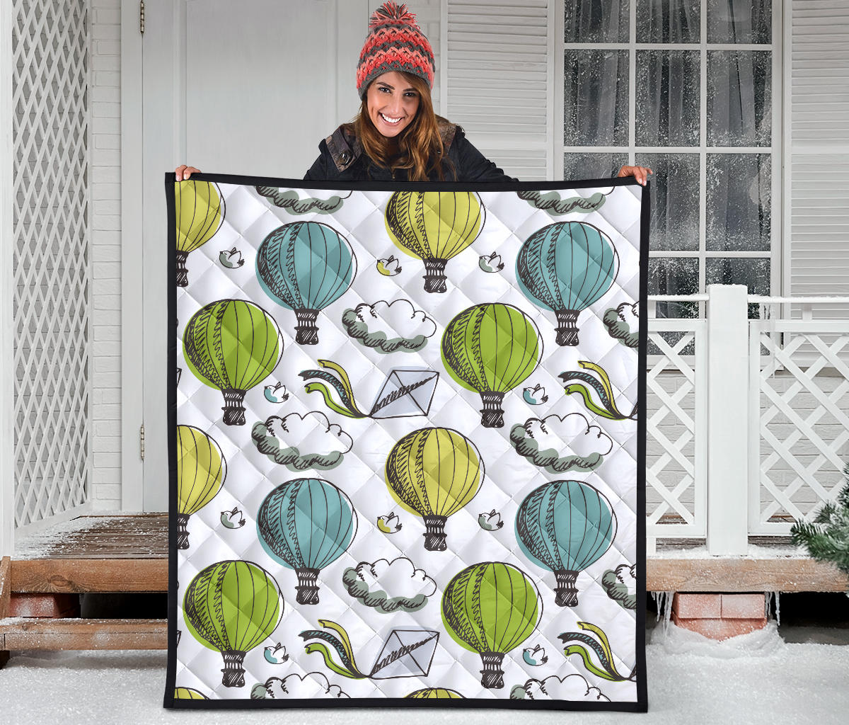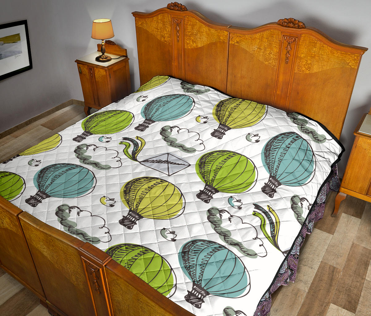 Hot Air Balloon Bird Cloud Pattern Premium Quilt is a uniqued design and limited item. It made to order, hand printed, and sewn with love in our factory.