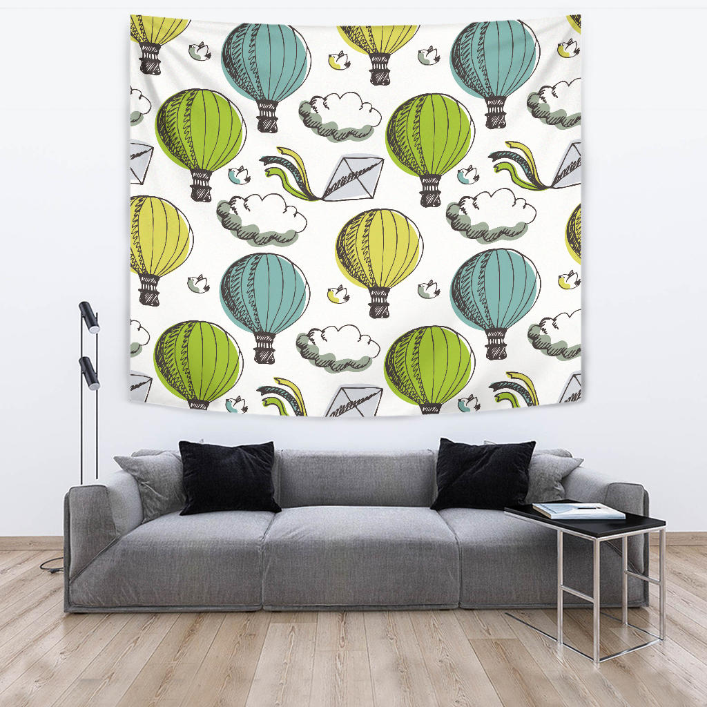 Hot Air Balloon Bird Cloud Pattern Wall Tapestry