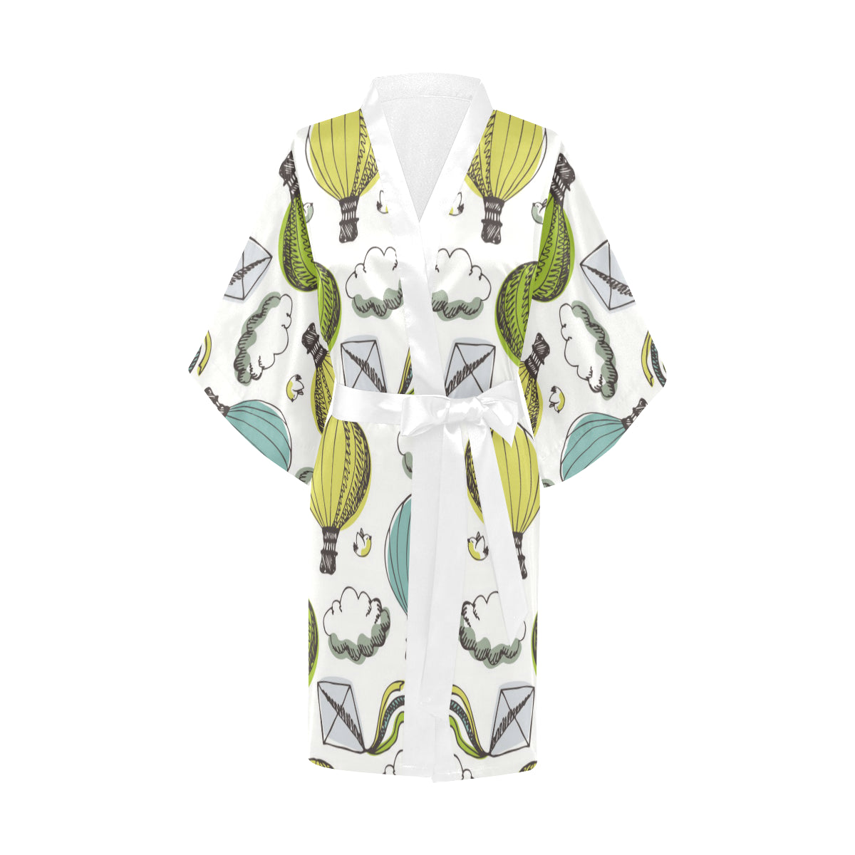 Hot Air Balloon Bird Cloud Pattern Women's Short Kimono Robe is a uniqued design and limited item. It made to order, hand printed, and sewn with love in our factory.
