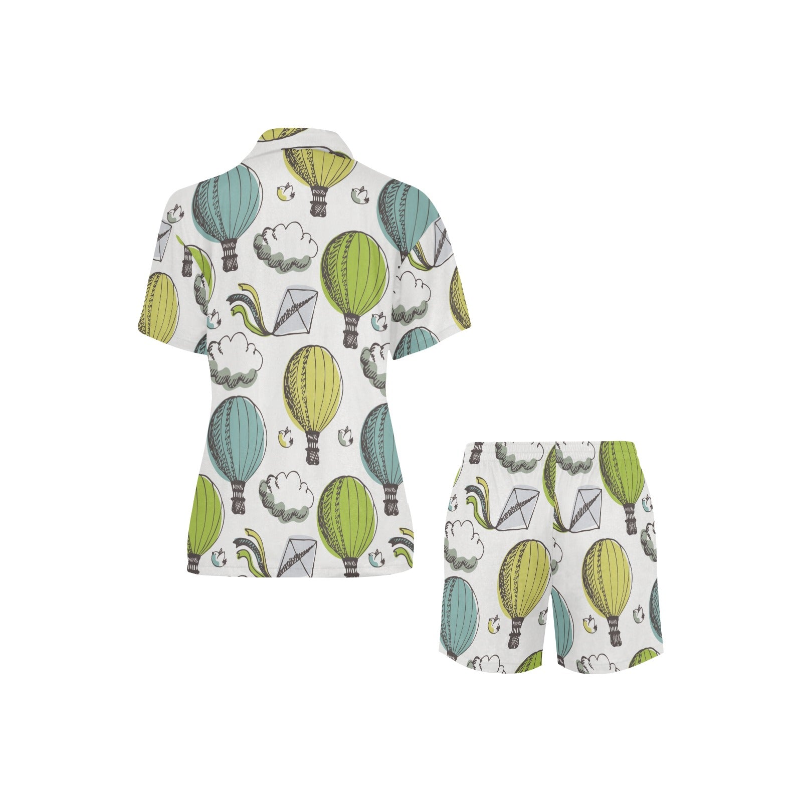 Hot Air Balloon Bird Cloud Pattern Women's V-Neck Short Pajama Set