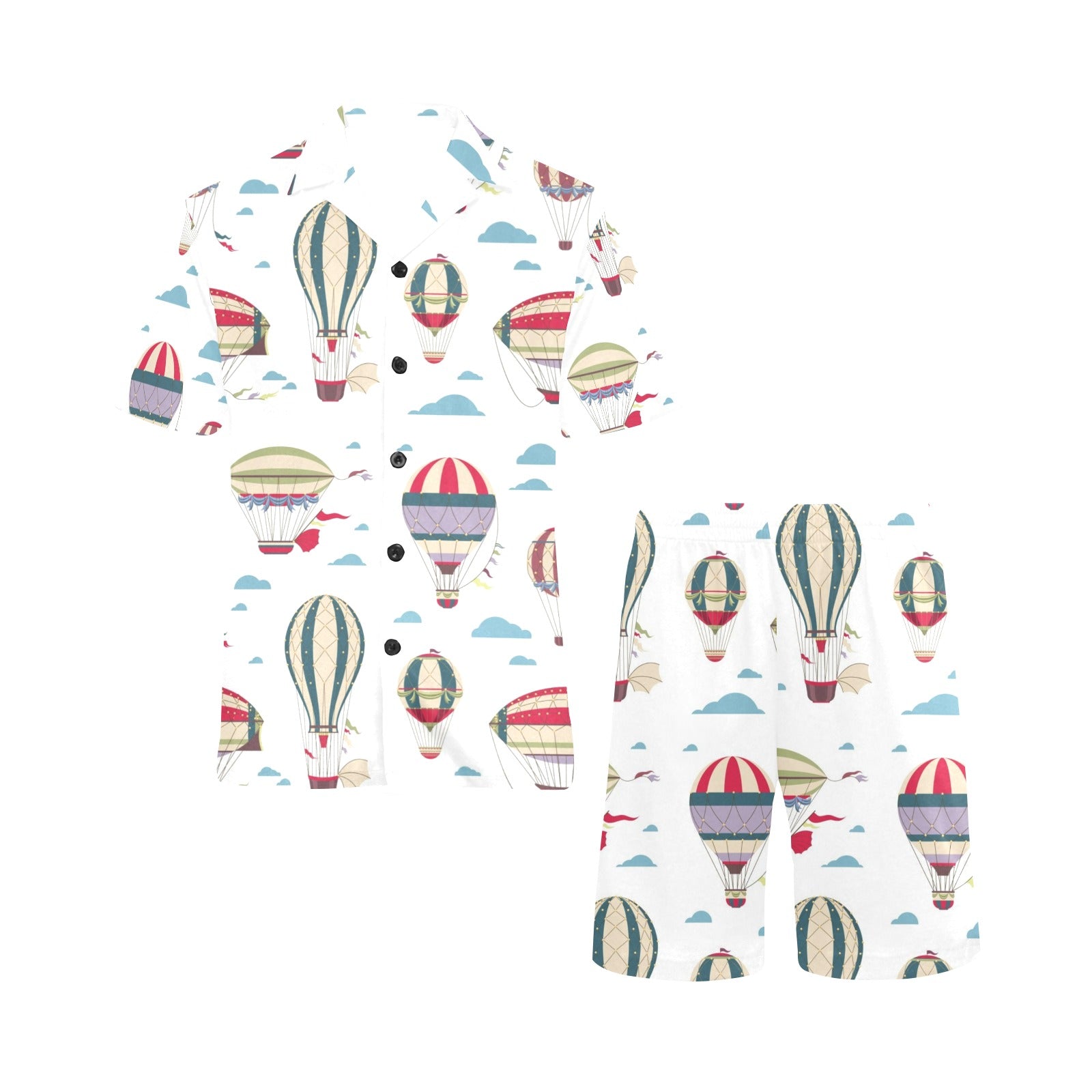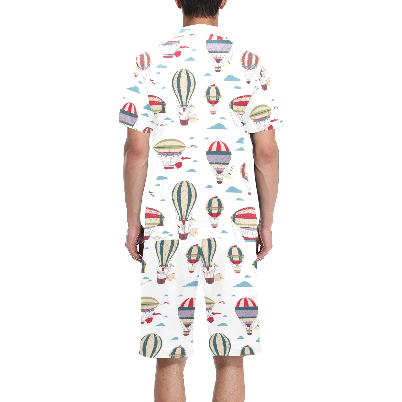 Hot air balloon pattern Men's V-Neck Short Pajama Set
