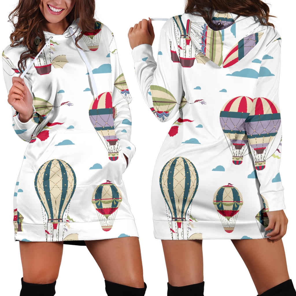 Hot Air Balloon Pattern Women'S Hoodie Dress