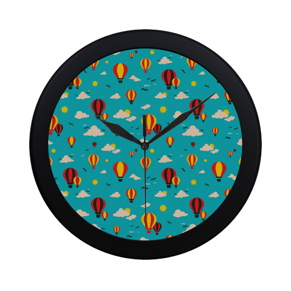Hot Air Balloon Sky Pattern Elegant Black Wall Clock