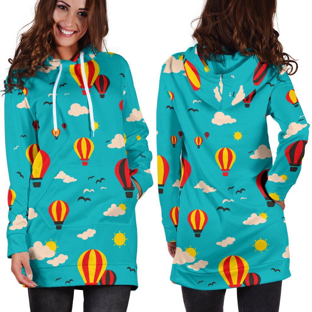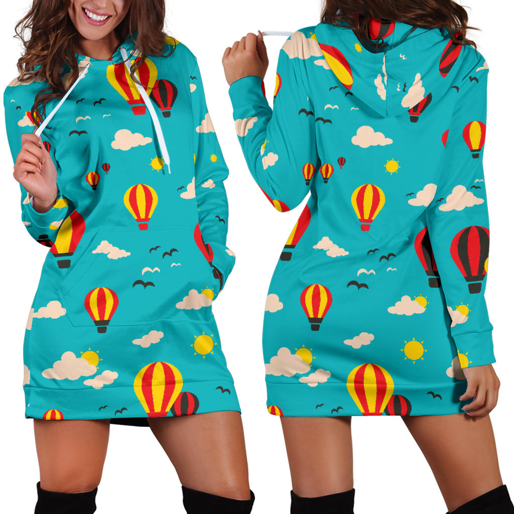 Hot Air Balloon Sky Pattern Women'S Hoodie Dress
