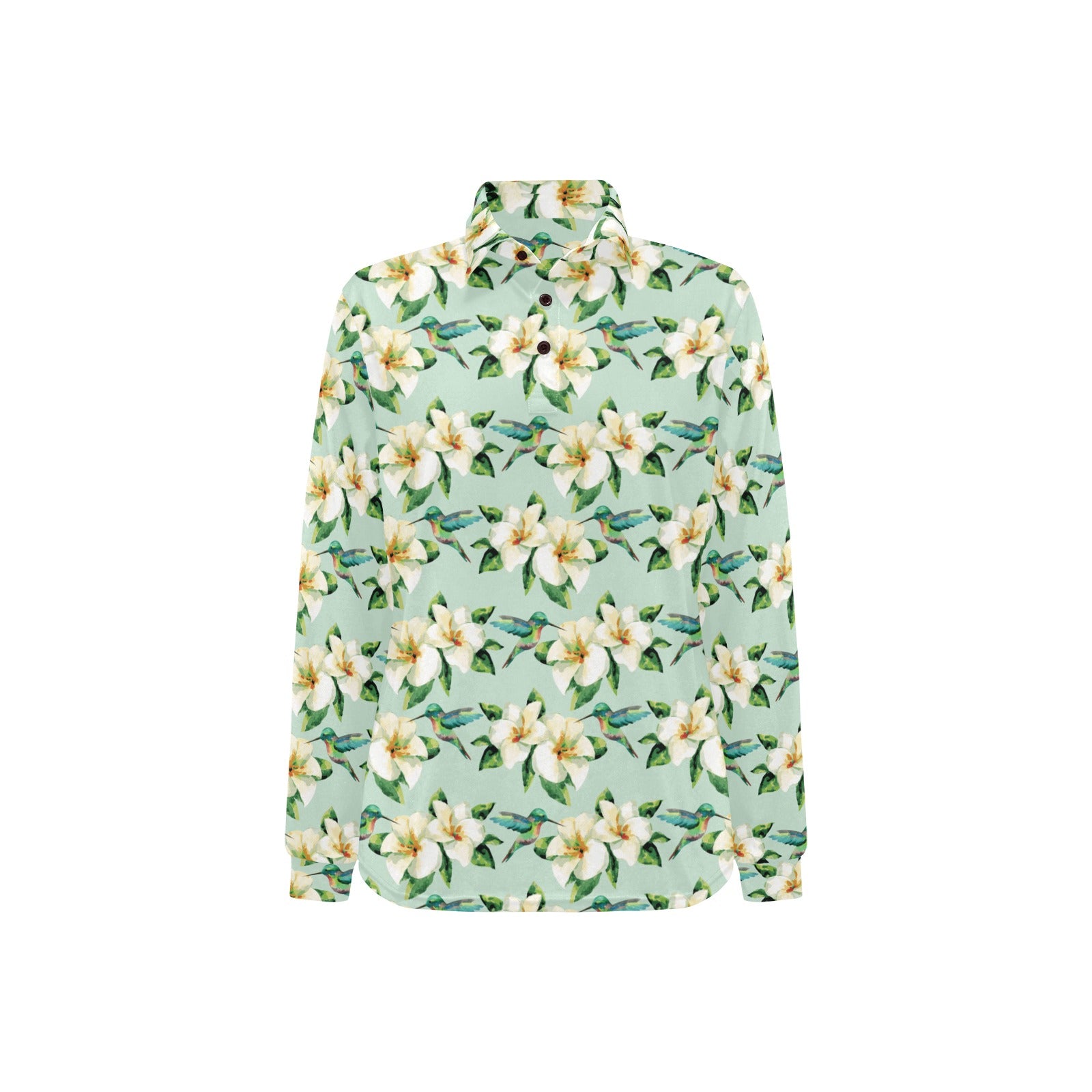 Hummingbird Pattern Print Design 01 Women's Long Sleeve Polo Shirt