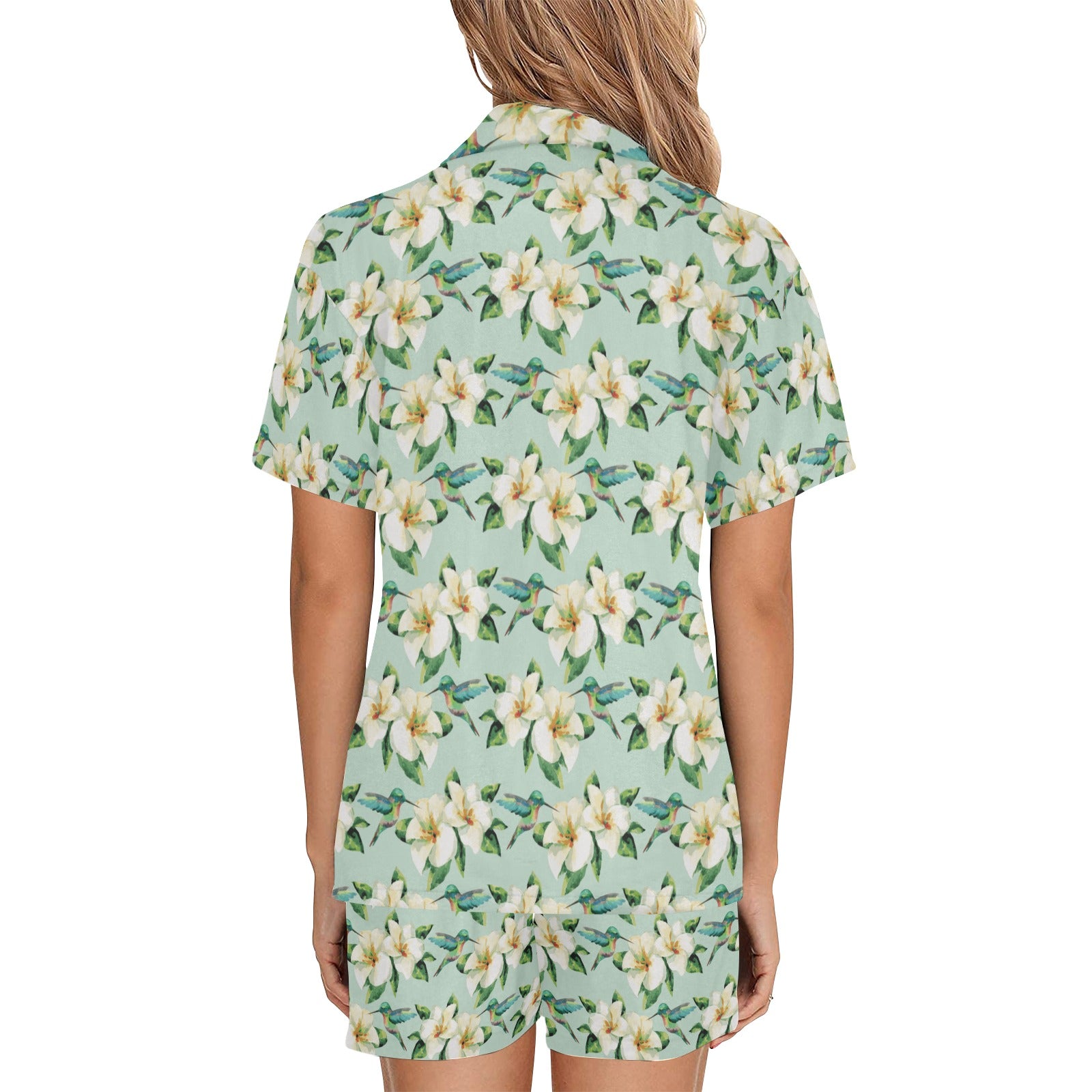 Hummingbird Pattern Print Design 01 Women's V-Neck Short Pajama Set