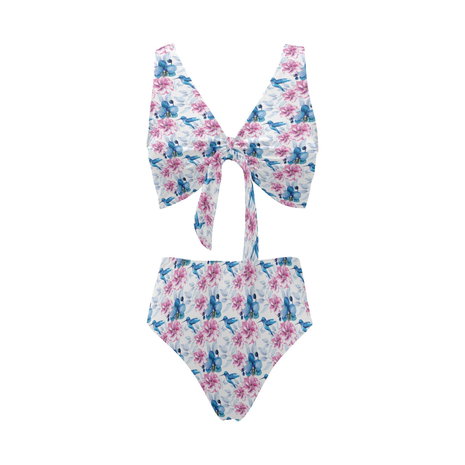 Hummingbird Pattern Print Design 02 Chest Bowknot High Waisted Bikini Swimsuit