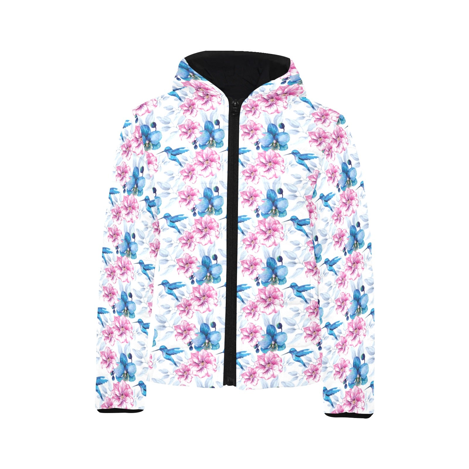 Hummingbird Pattern Print Design 02 Kids' Boys' Girls' Padded Hooded Jacket