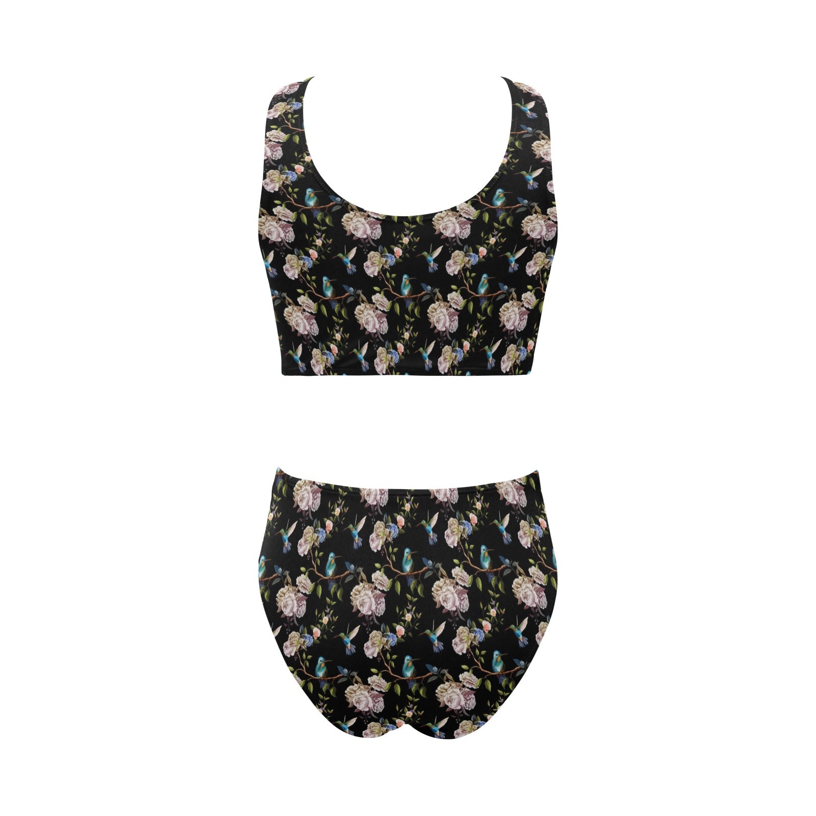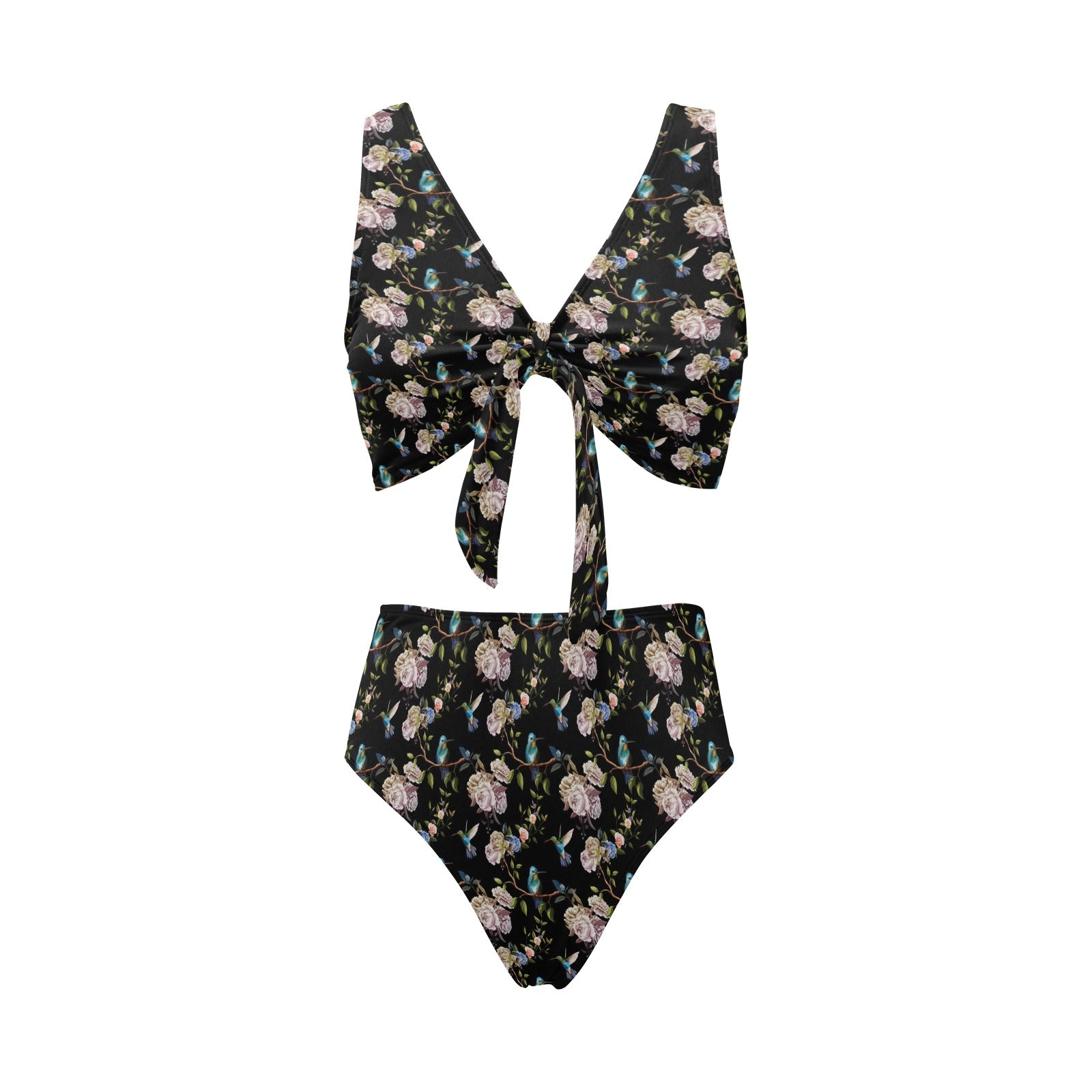 Hummingbird Pattern Print Design 03 Chest Bowknot High Waisted Bikini Swimsuit