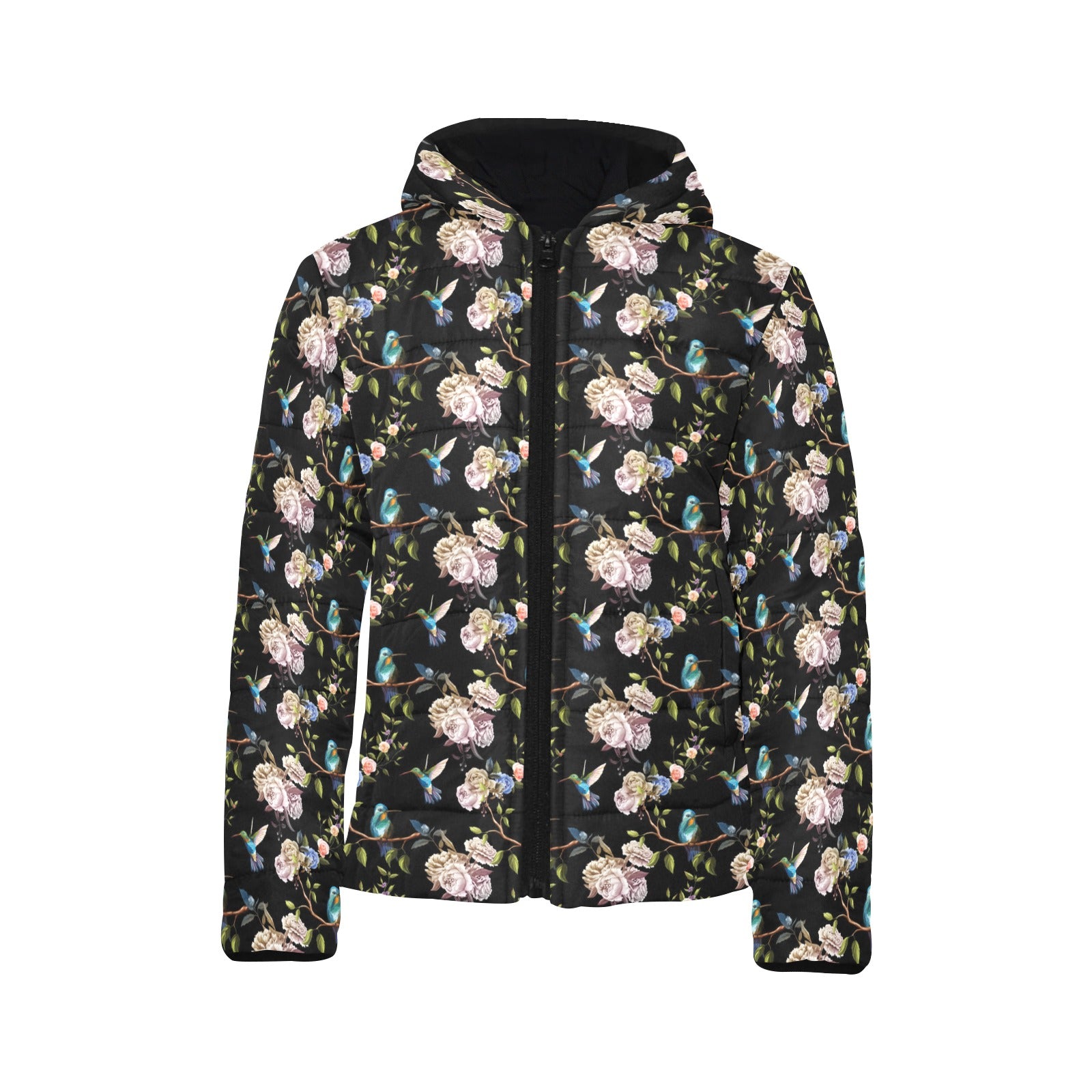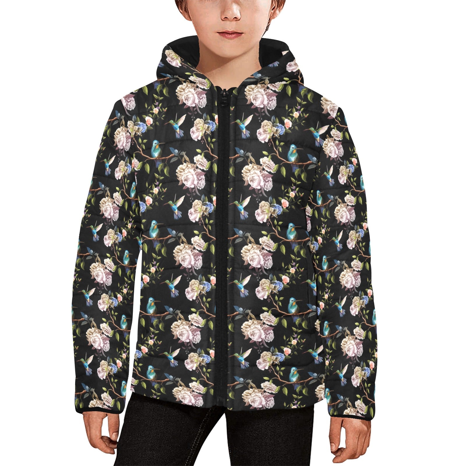 Hummingbird Pattern Print Design 03 Kids' Boys' Girls' Padded Hooded Jacket