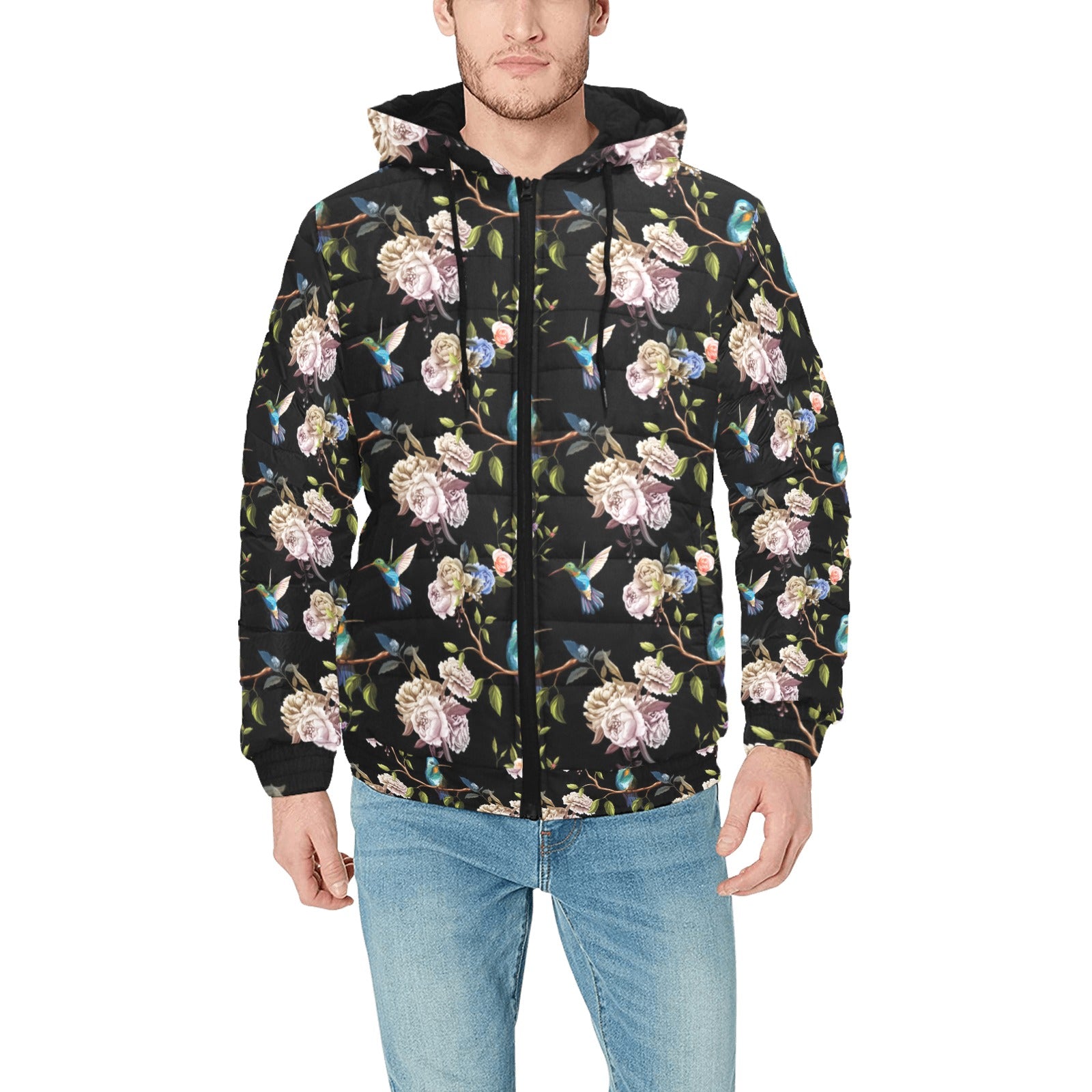 Hummingbird Pattern Print Design 03 Men's Padded Hooded Jacket