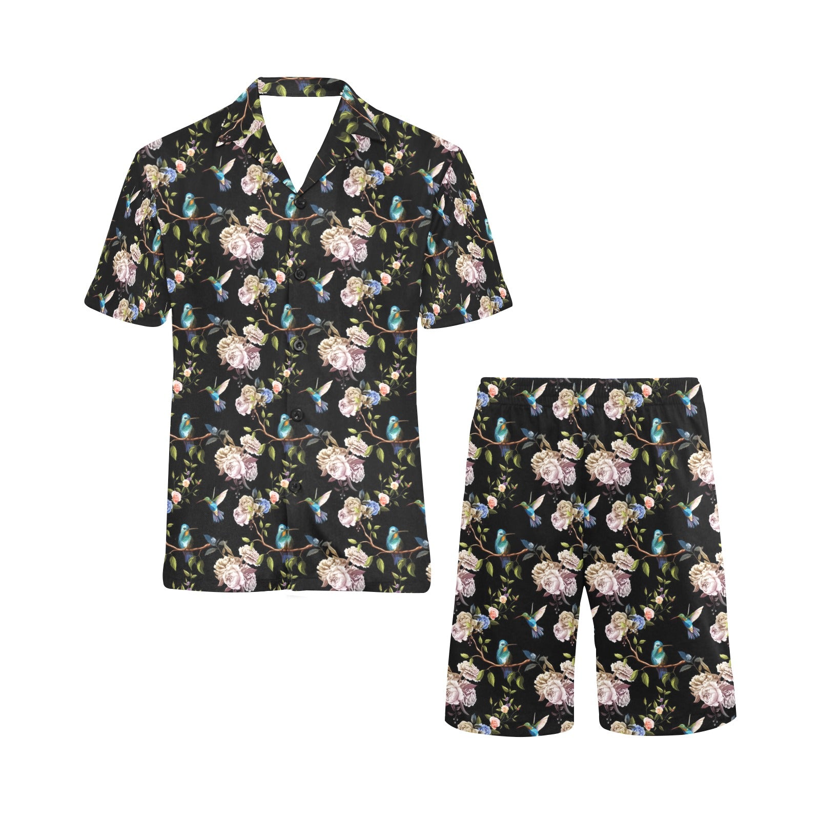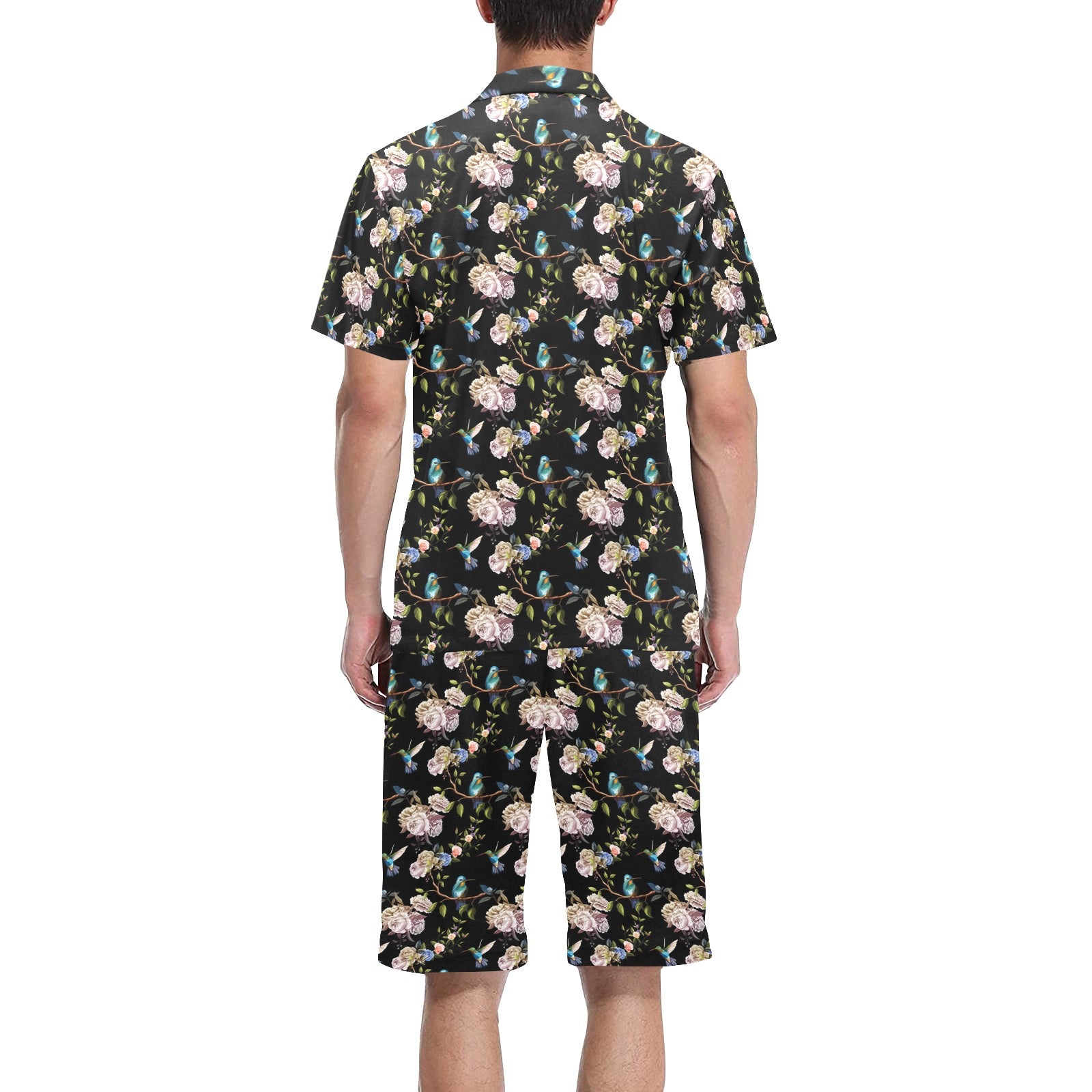 Hummingbird Pattern Print Design 03 Men's V-Neck Short Pajama Set