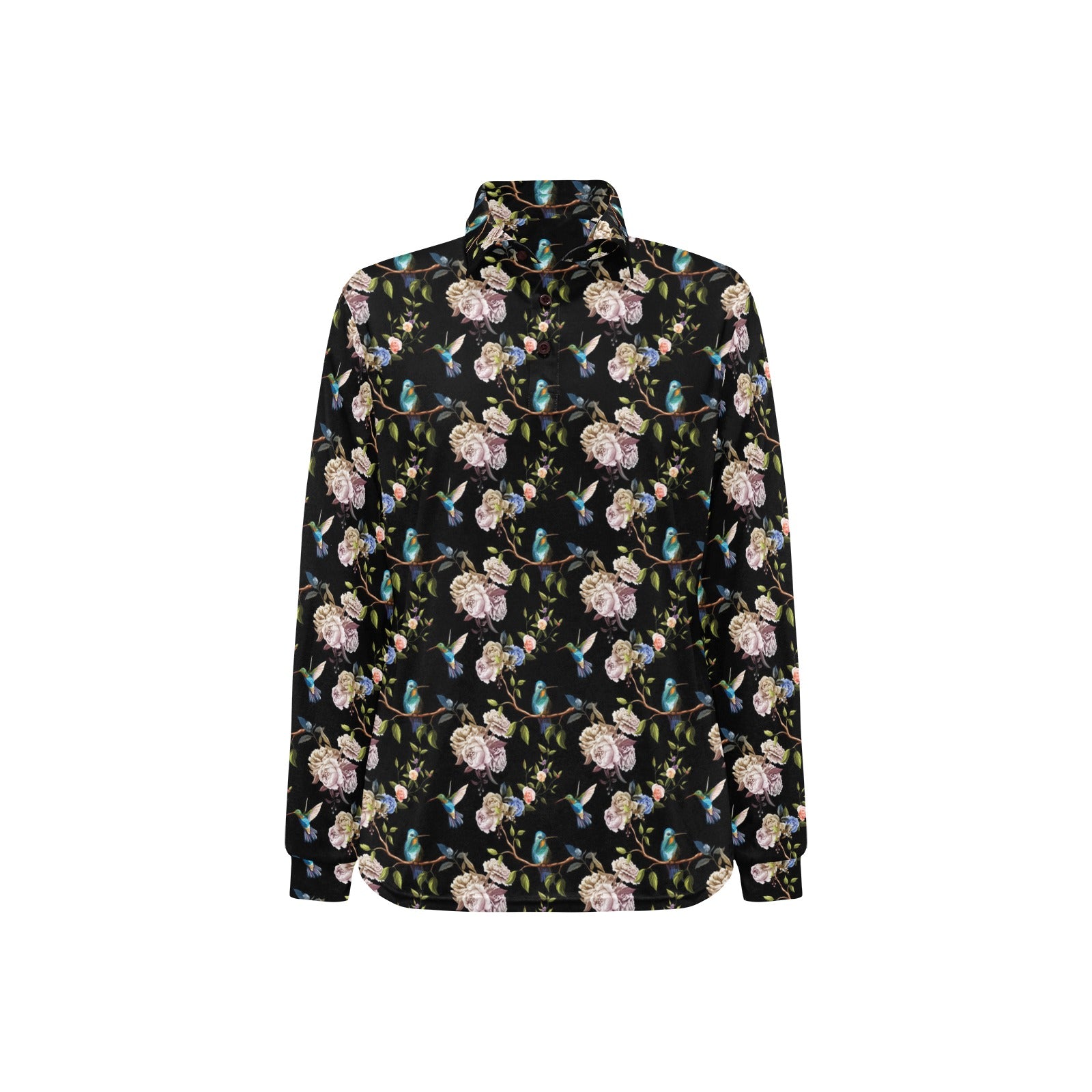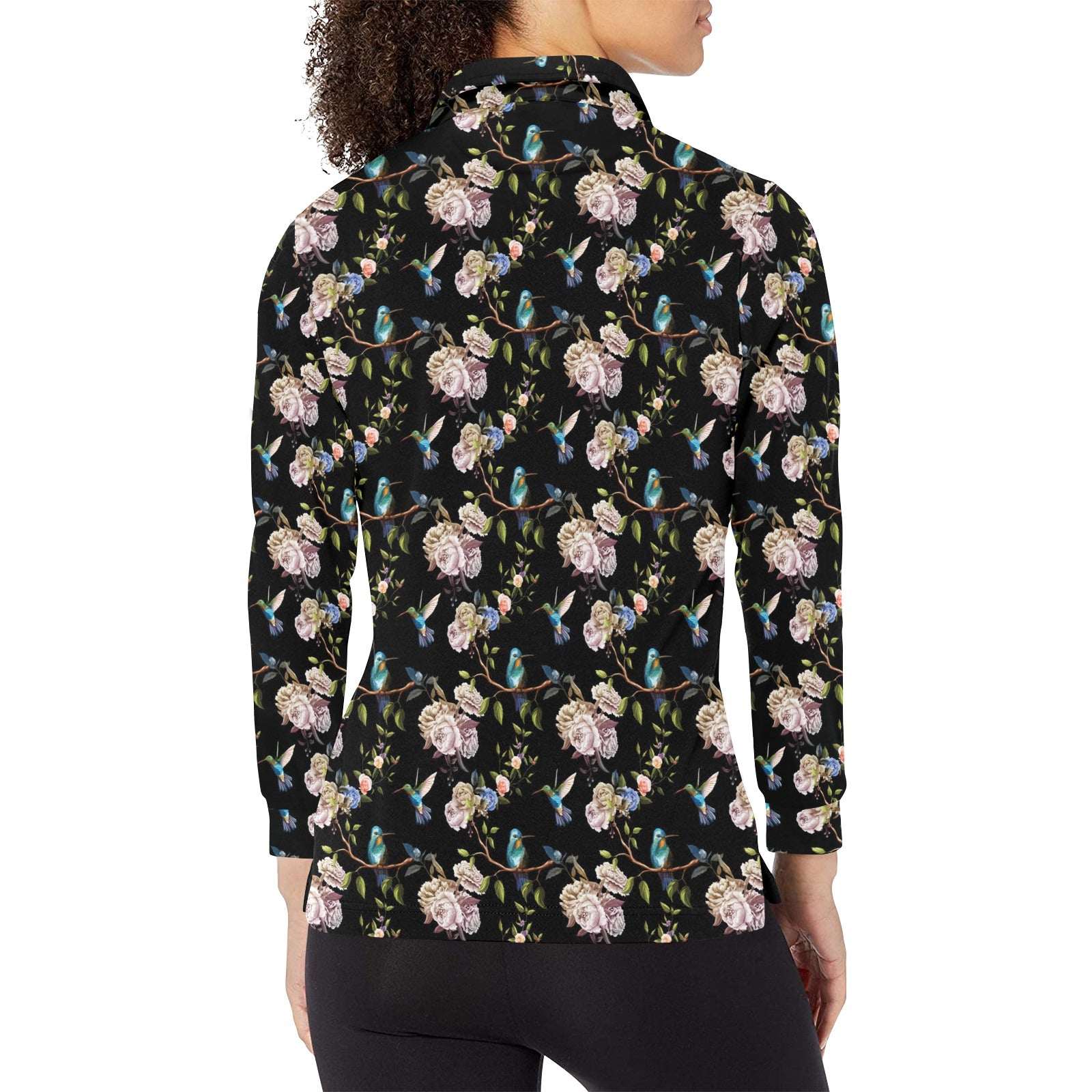 Hummingbird Pattern Print Design 03 Women's Long Sleeve Polo Shirt