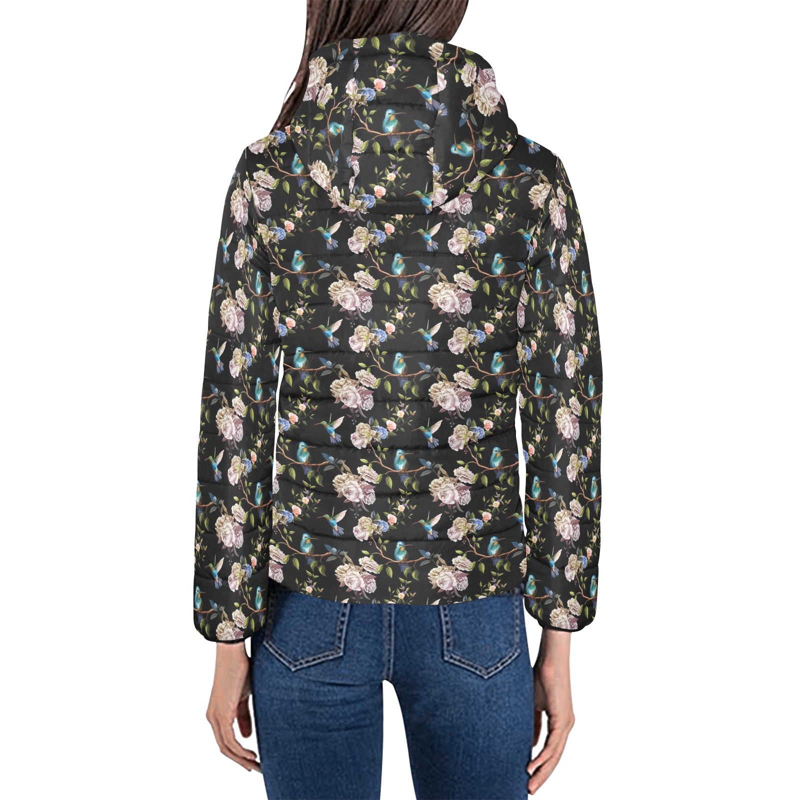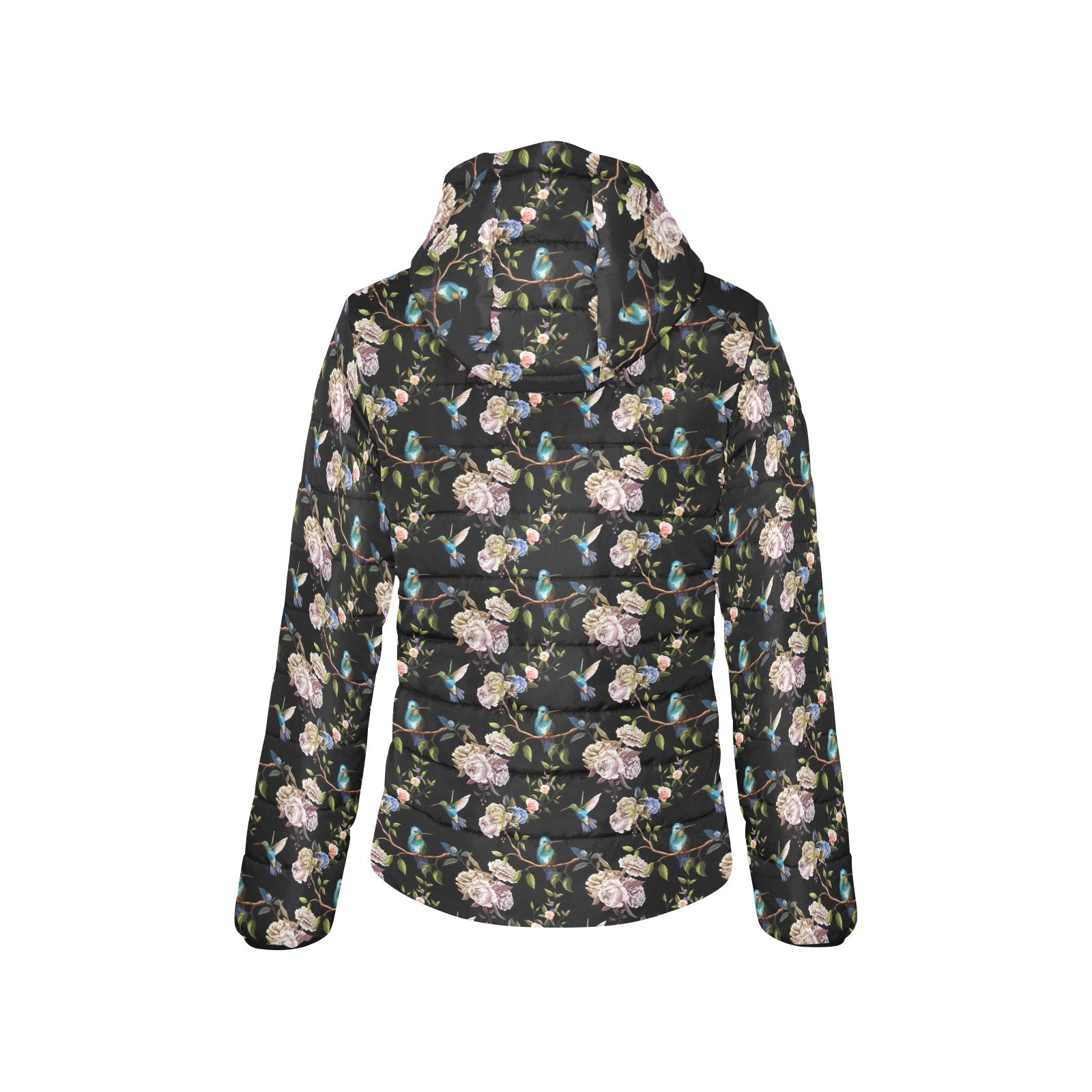 Hummingbird Pattern Print Design 03 Women's Padded Hooded Jacket
