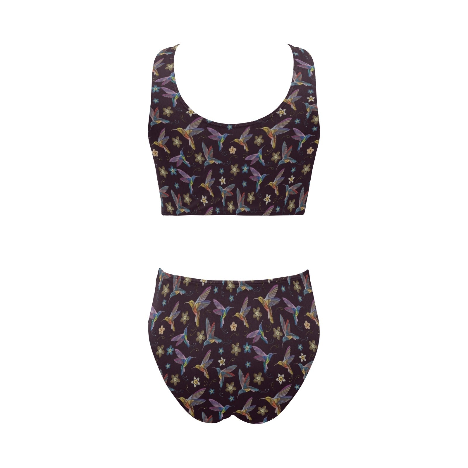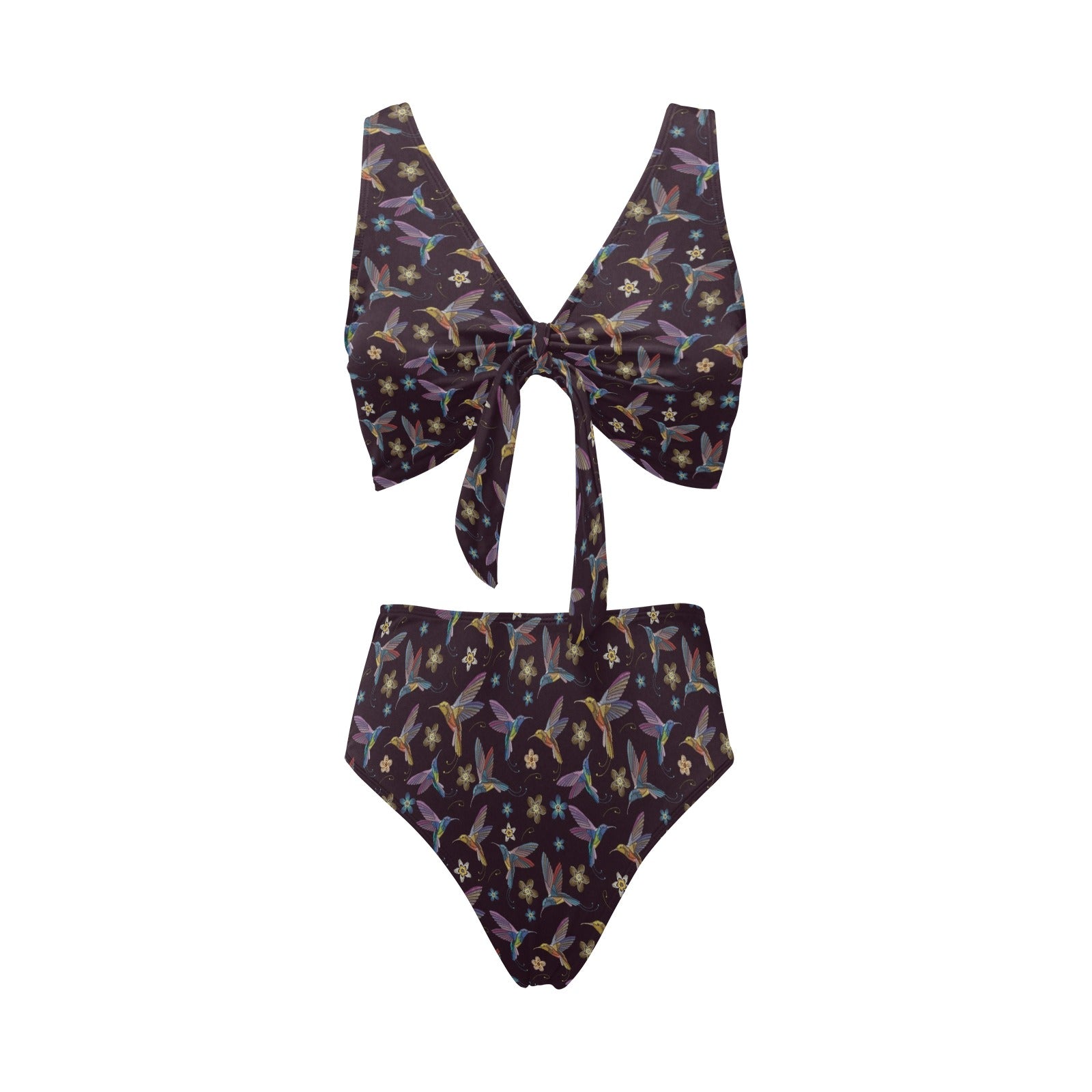 Hummingbird Pattern Print Design 04 Chest Bowknot High Waisted Bikini Swimsuit