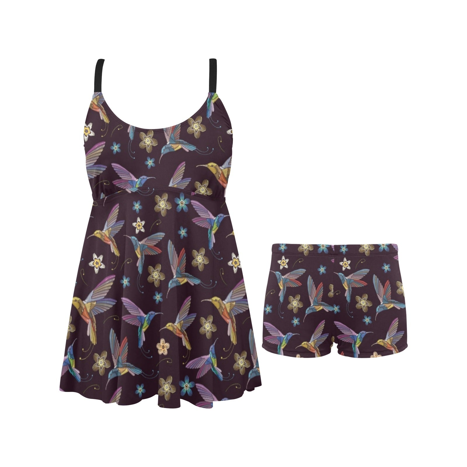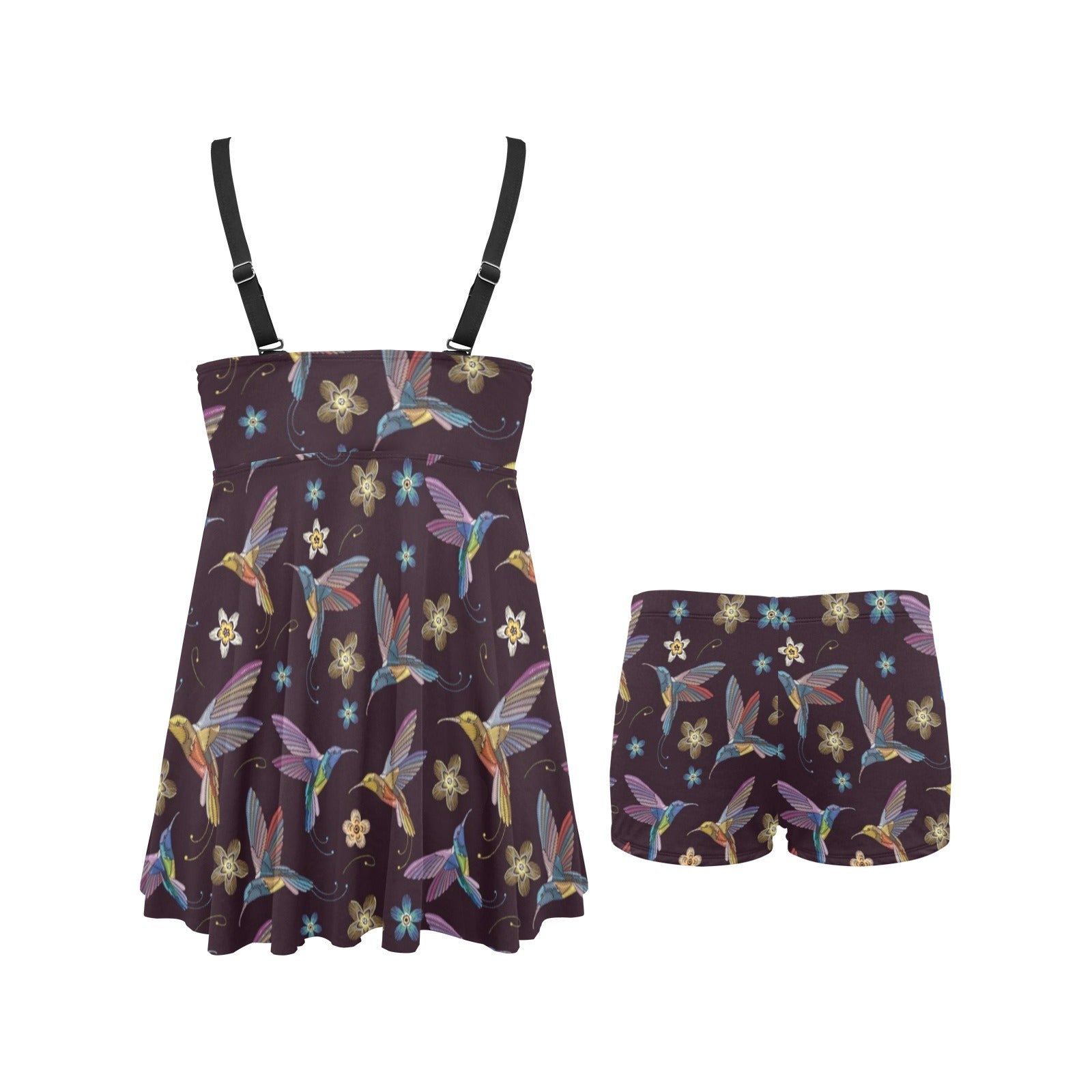 Hummingbird Pattern Print Design 04 Chest Sexy Pleated Two Piece Swim Dress
