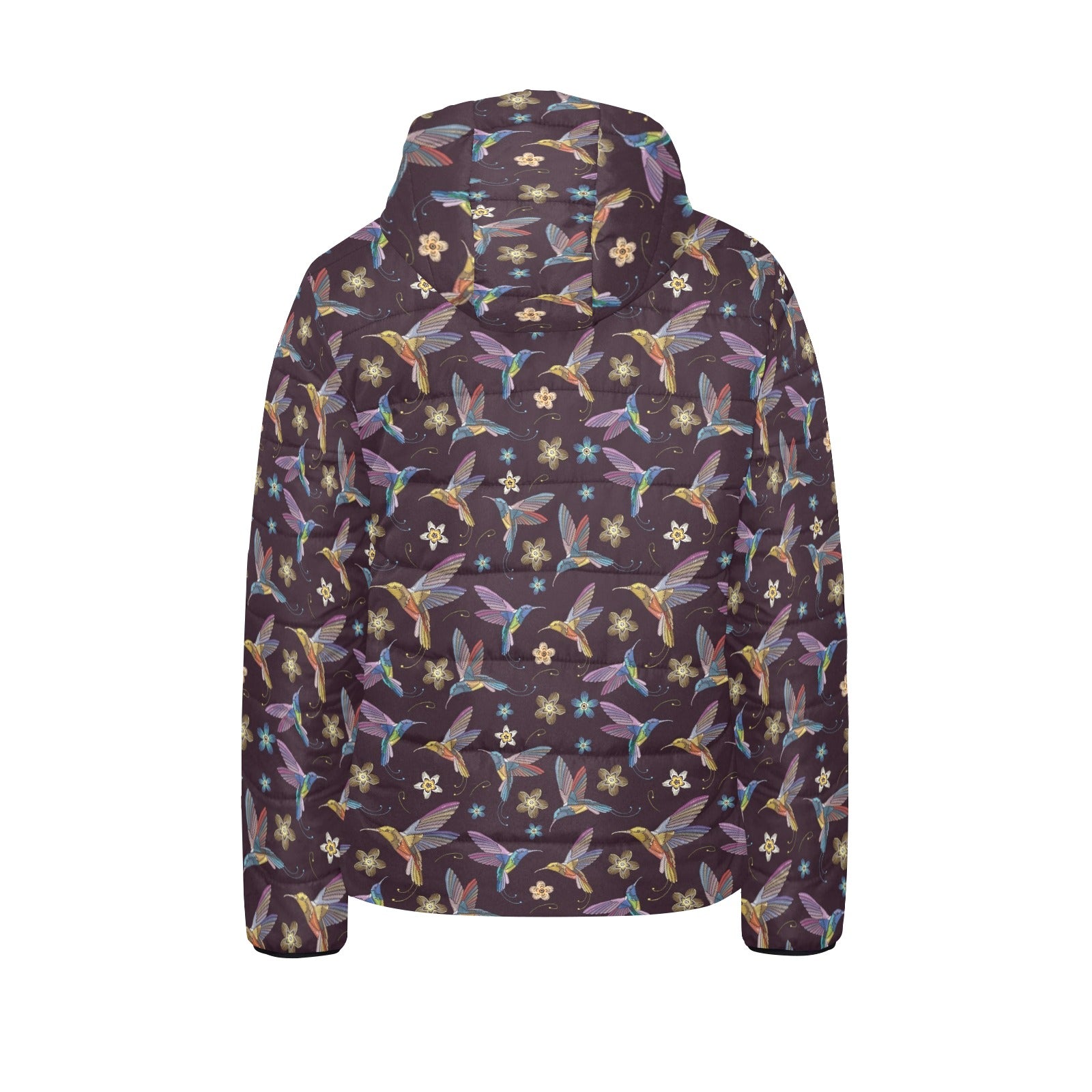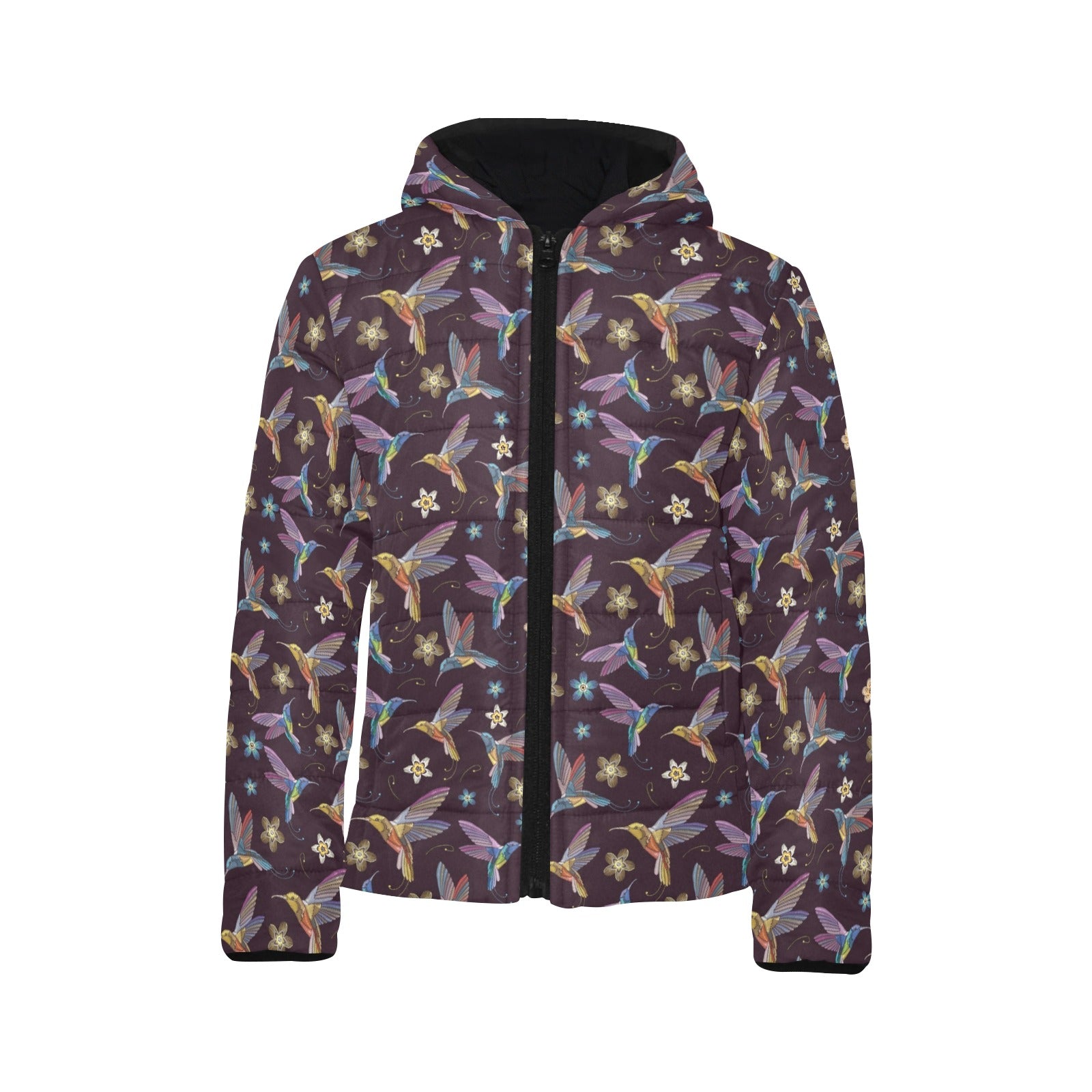 Hummingbird Pattern Print Design 04 Kids' Boys' Girls' Padded Hooded Jacket