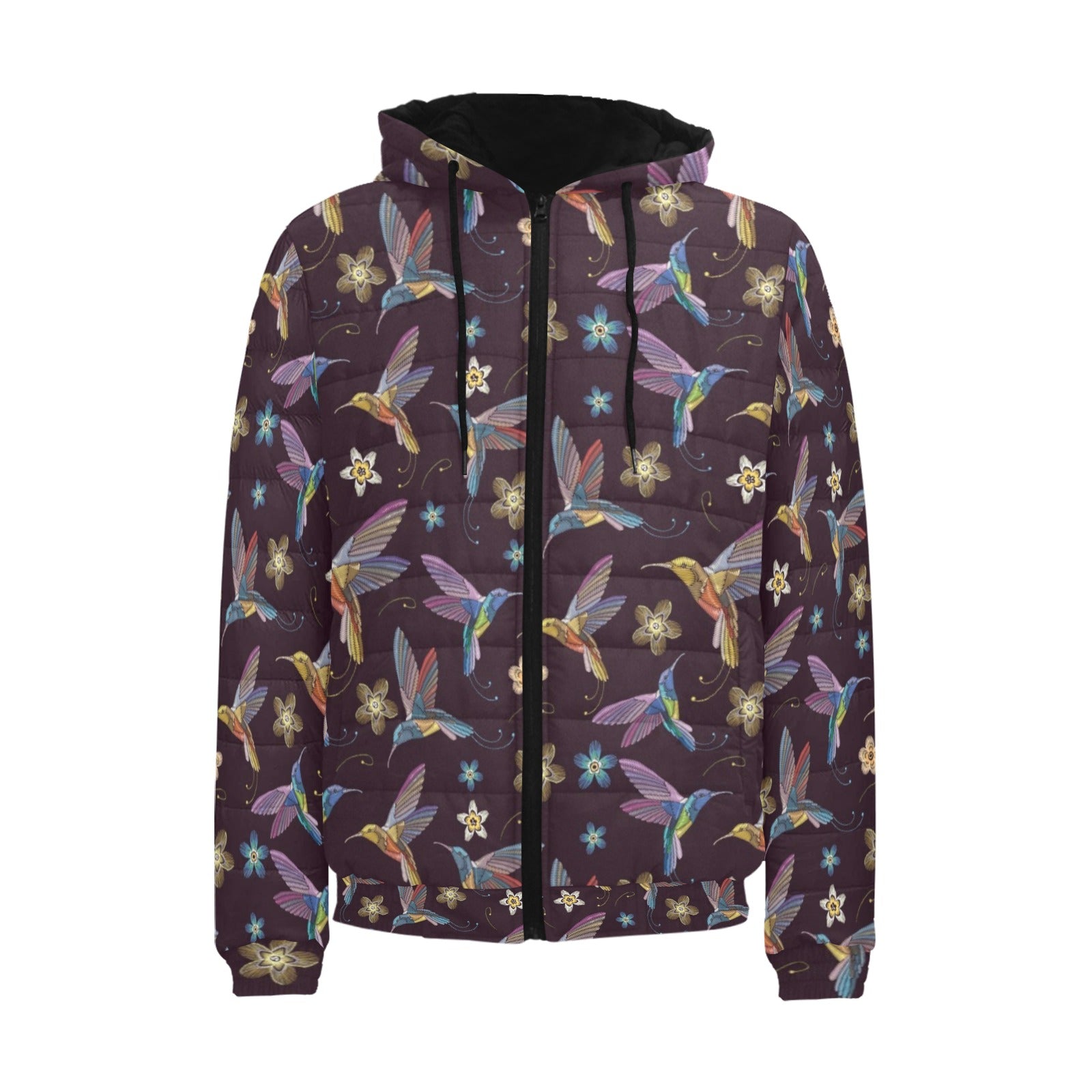 Hummingbird Pattern Print Design 04 Men's Padded Hooded Jacket