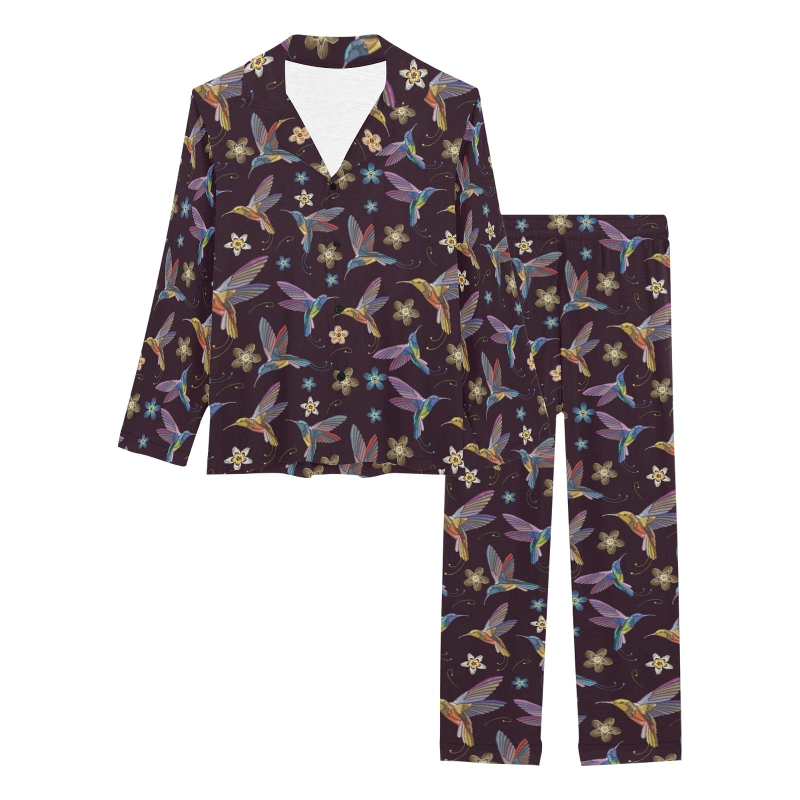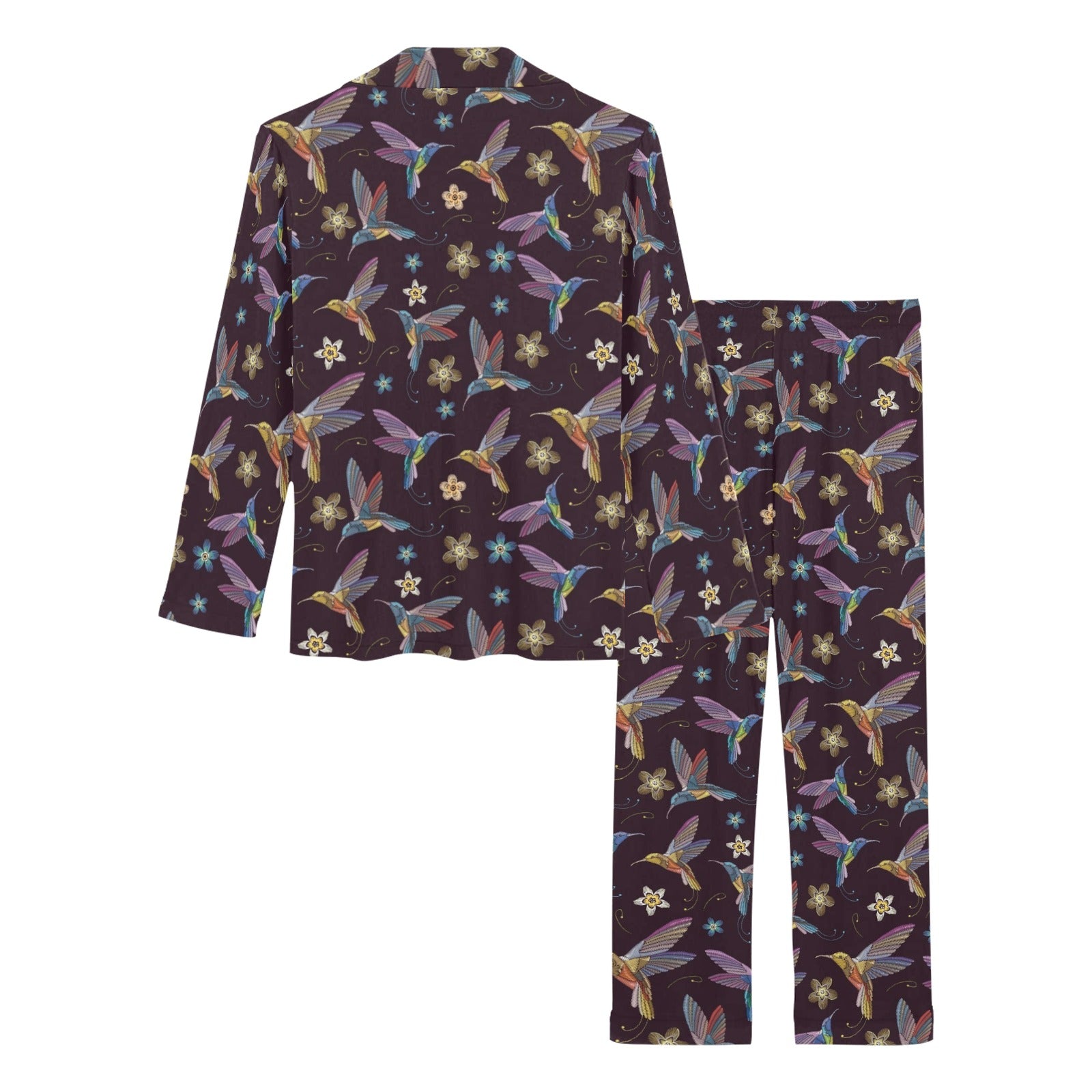 Hummingbird Pattern Print Design 04 Women's Long Pajama Set