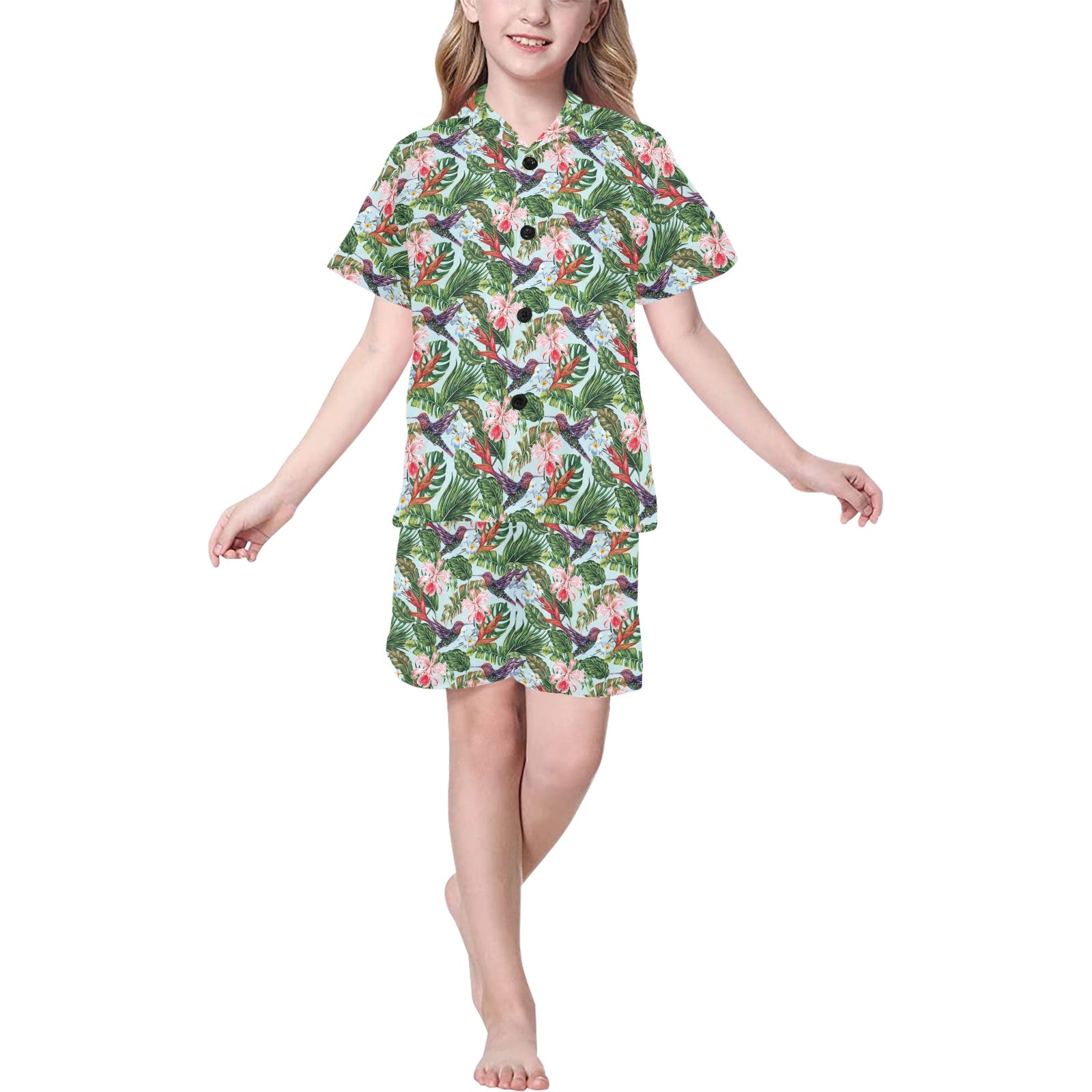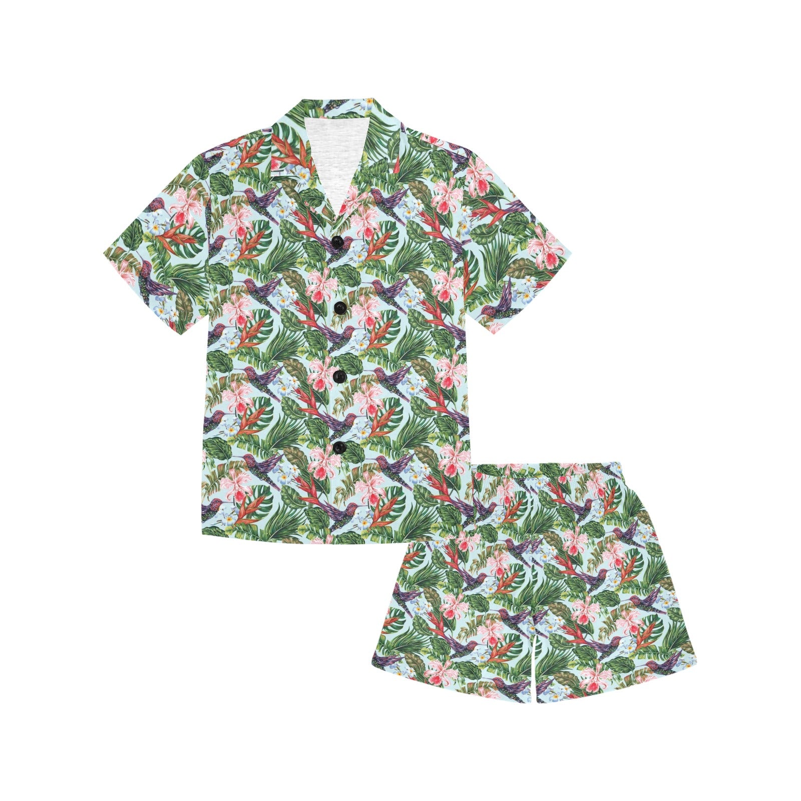 Hummingbird Pattern Print Design 05 Kids' Boys' Girls' V-Neck Short Pajama Set