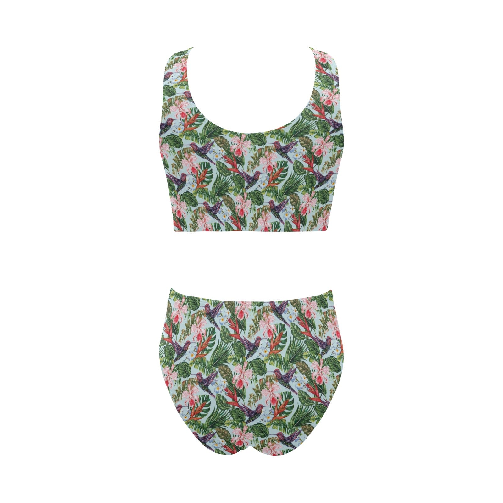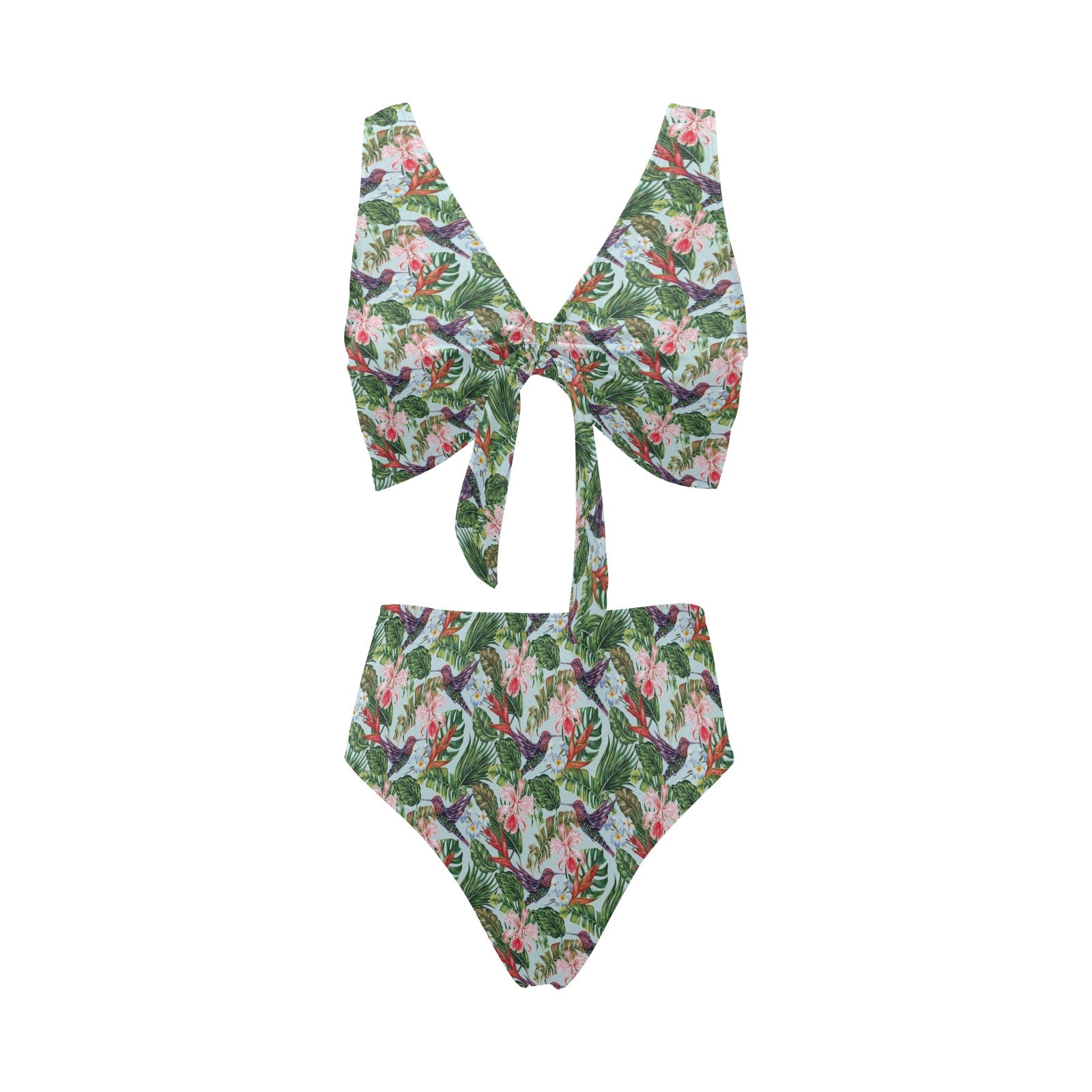 Hummingbird Pattern Print Design 05 Chest Bowknot High Waisted Bikini Swimsuit