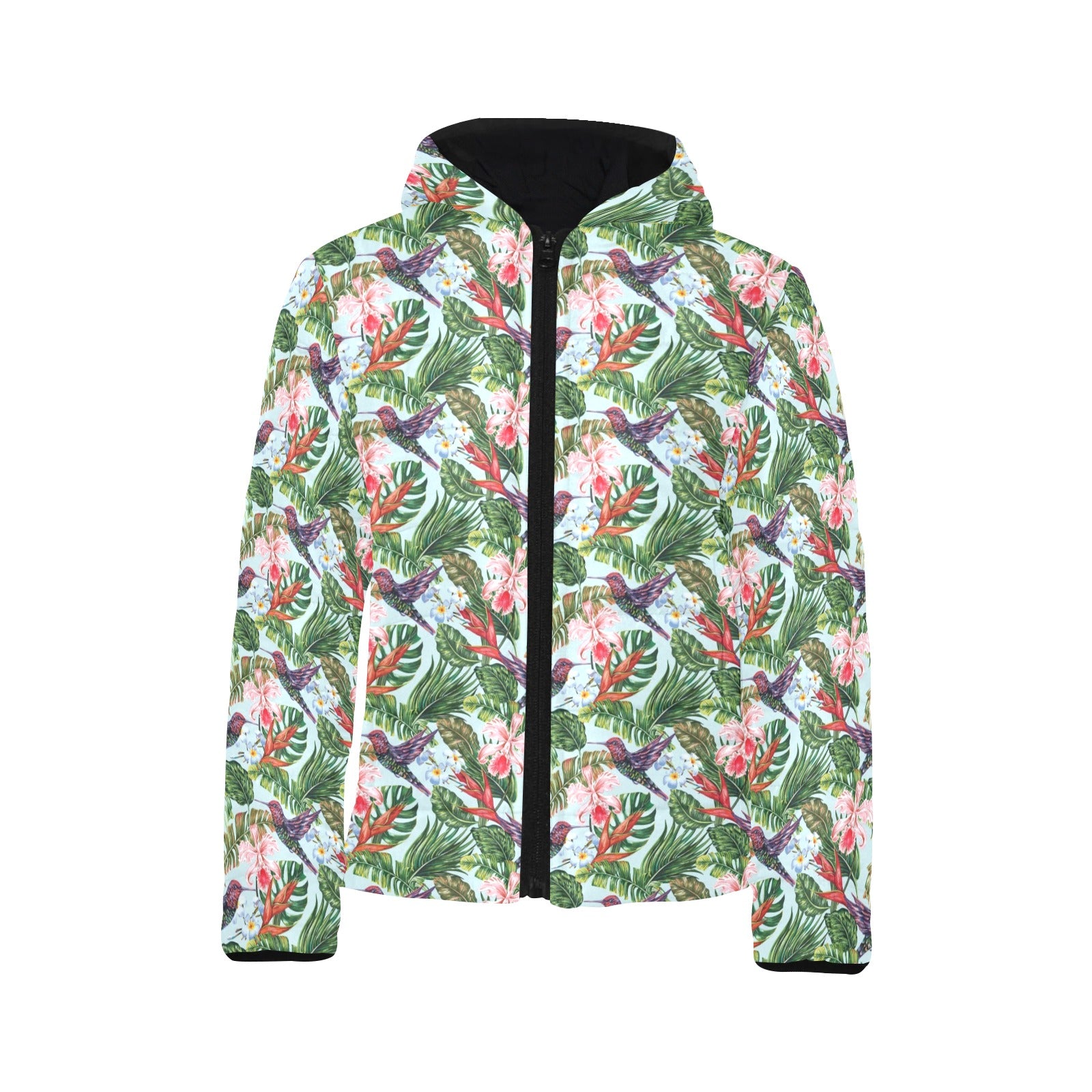 Hummingbird Pattern Print Design 05 Kids' Boys' Girls' Padded Hooded Jacket