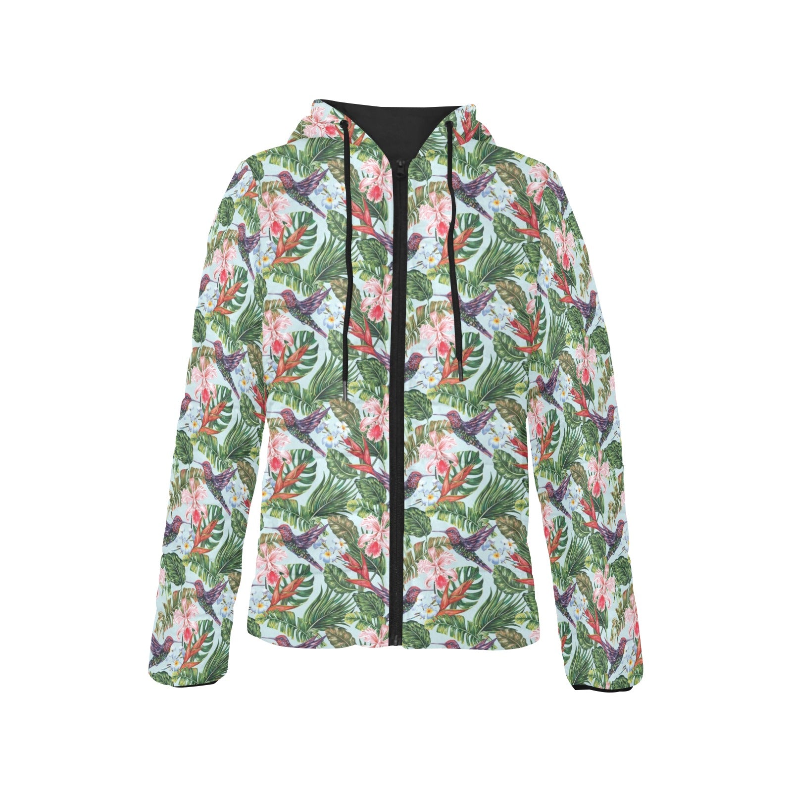 Hummingbird Pattern Print Design 05 Women's Padded Hooded Jacket