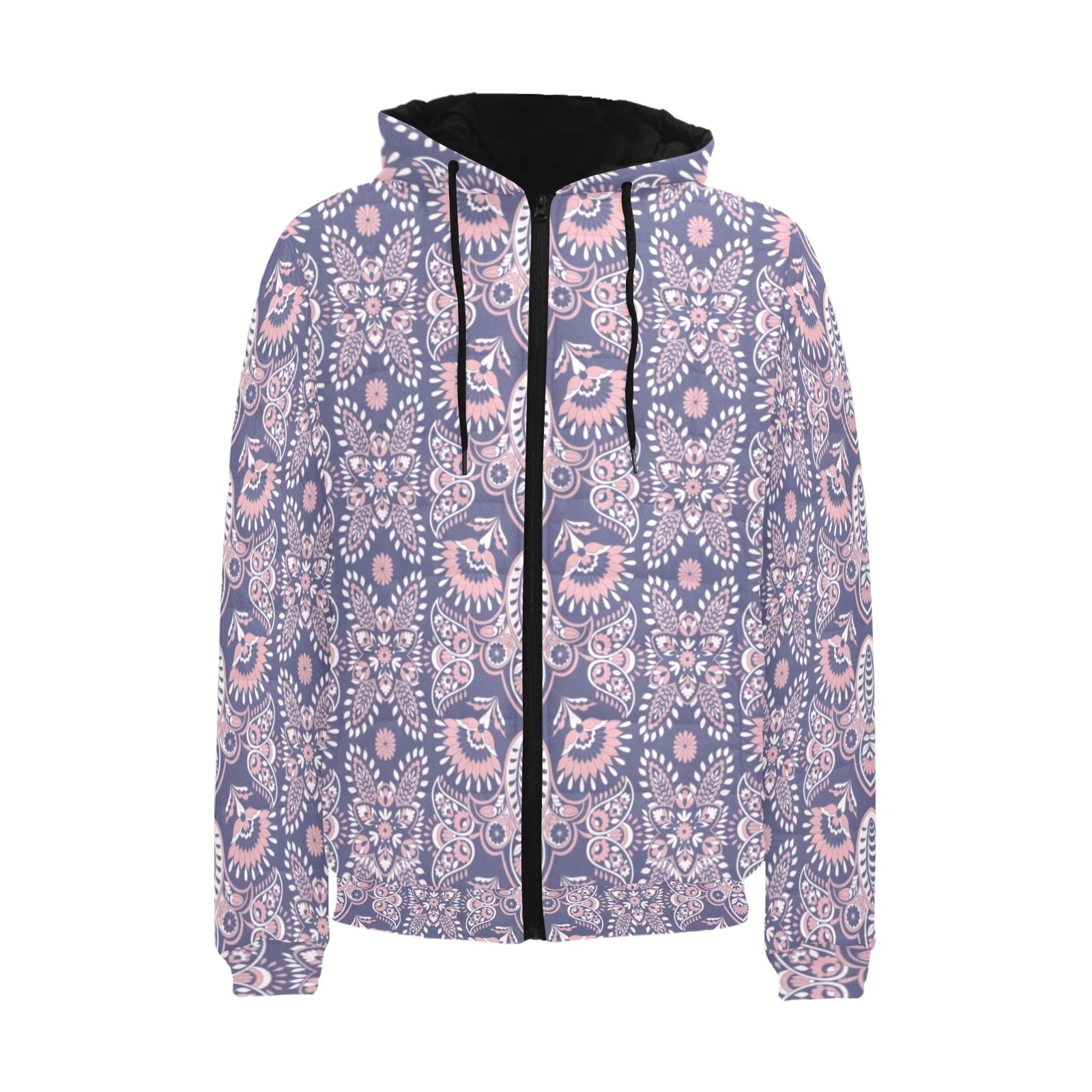 Indian Batik Style pattern Men's Padded Hooded Jacket