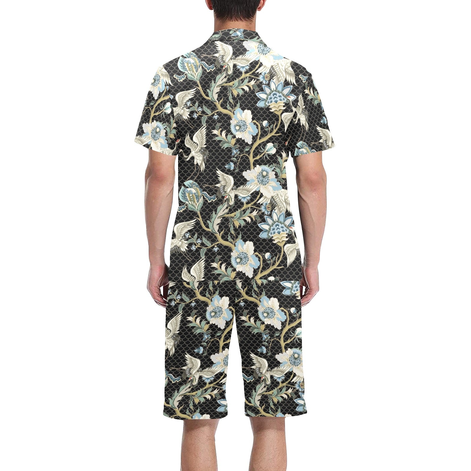 Indian Batik Style pattern Men's V-Neck Short Pajama Set