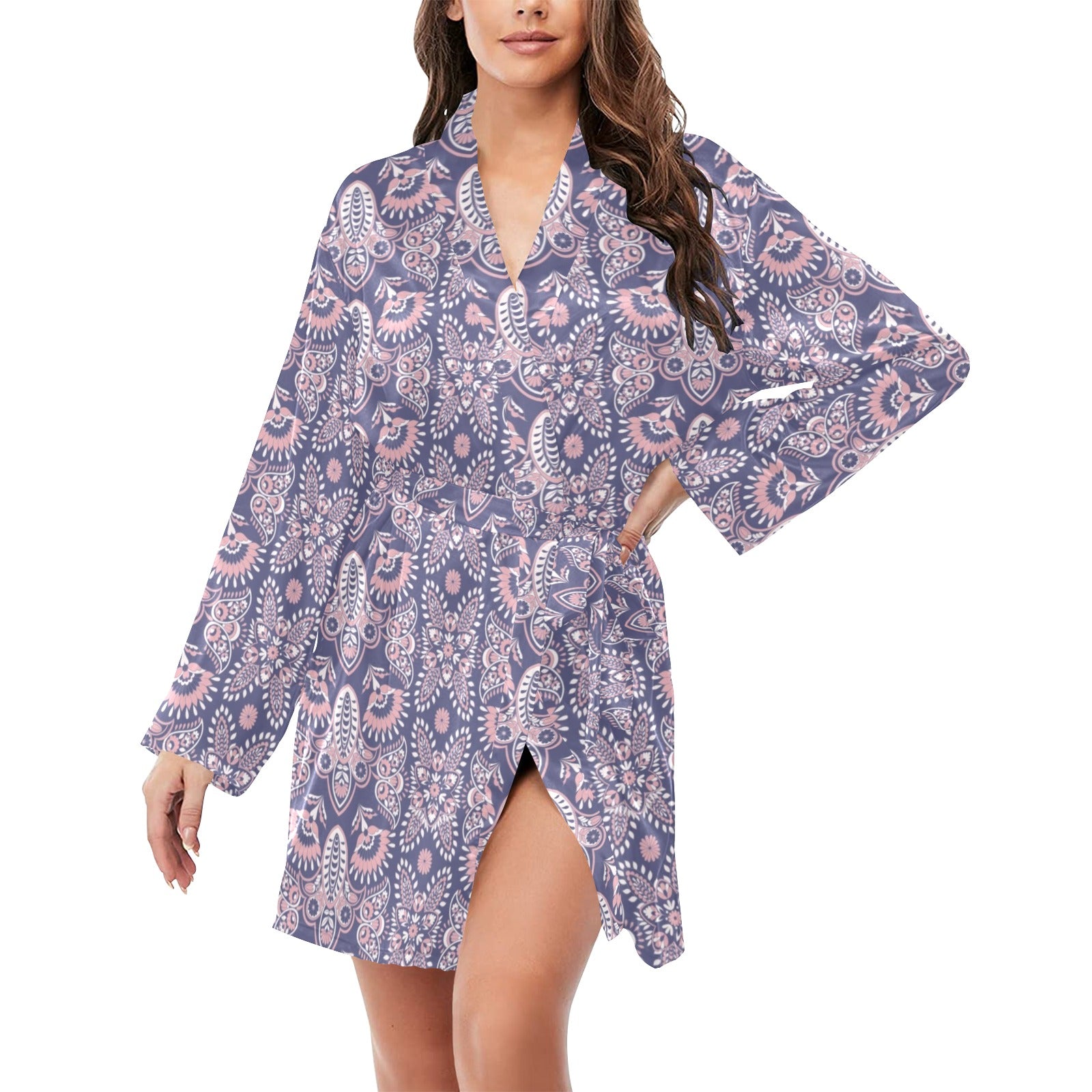 Women's Long Sleeve Belted Night Robe is uniqued design and limited item. It made to order, hand printed, and sewn with love in our factory.