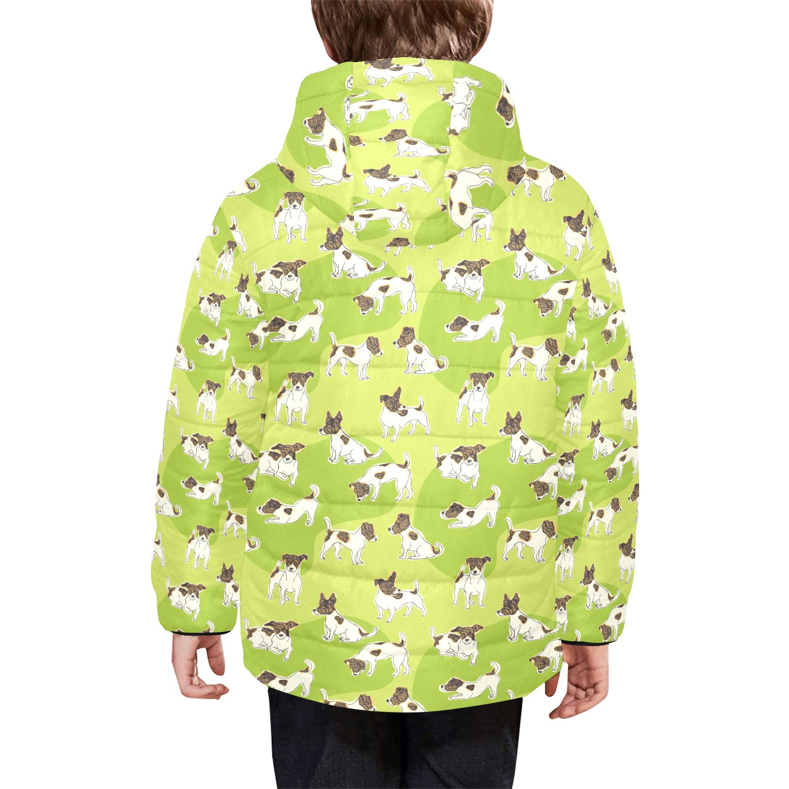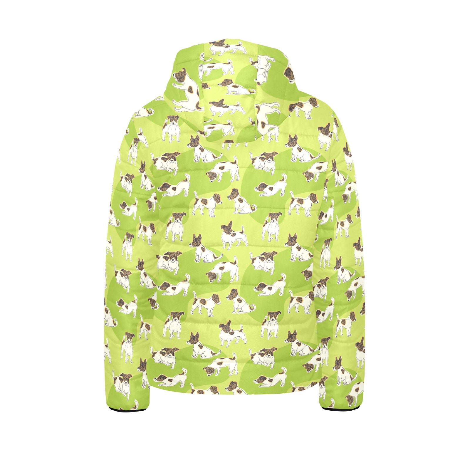 Jack Russel Pattern Print Design 01 Kids' Boys' Girls' Padded Hooded Jacket
