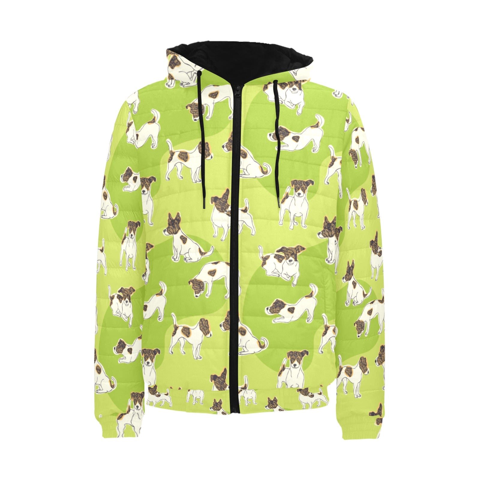 Jack Russel Pattern Print Design 01 Men's Padded Hooded Jacket