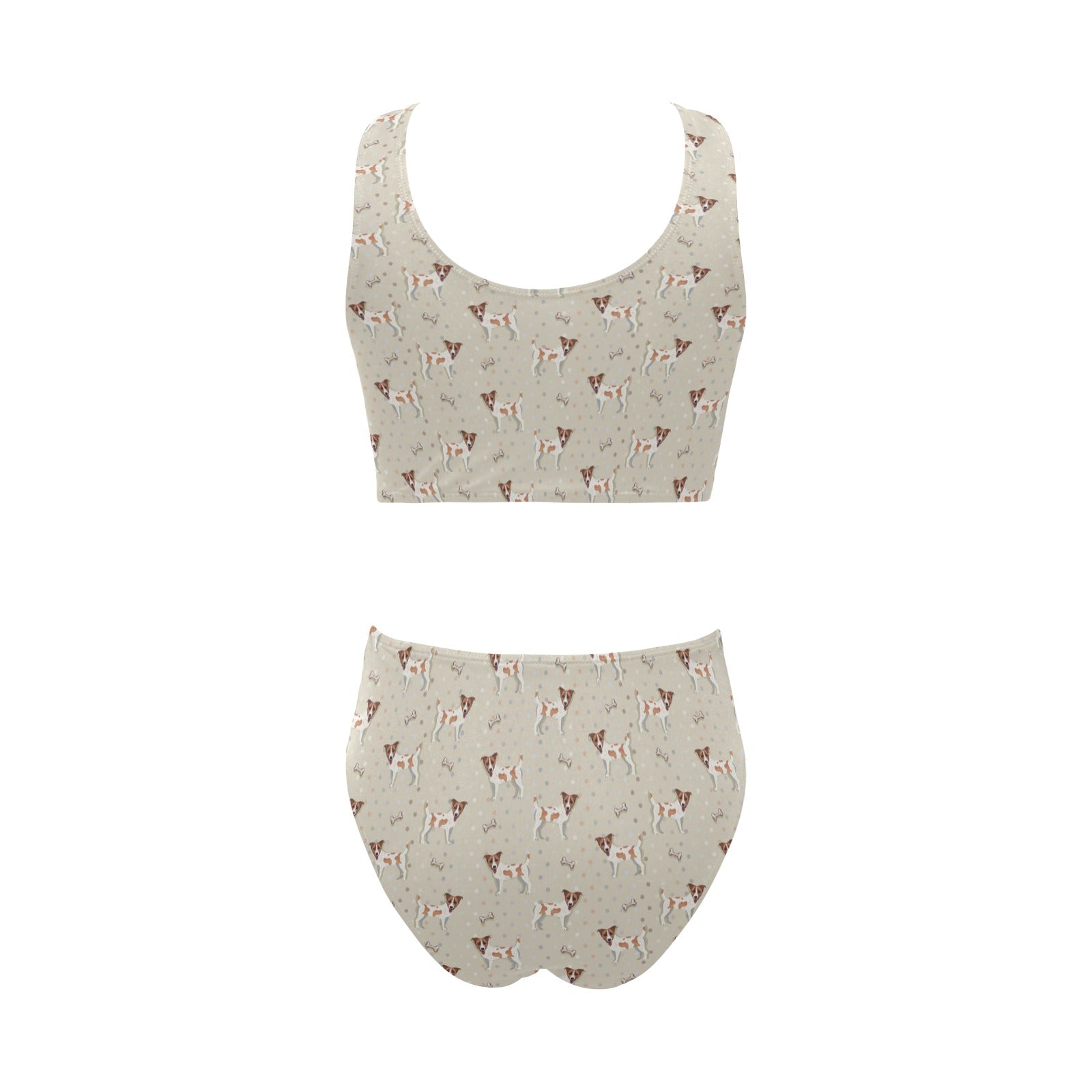 Jack Russel Pattern Print Design 02 Chest Bowknot High Waisted Bikini Swimsuit
