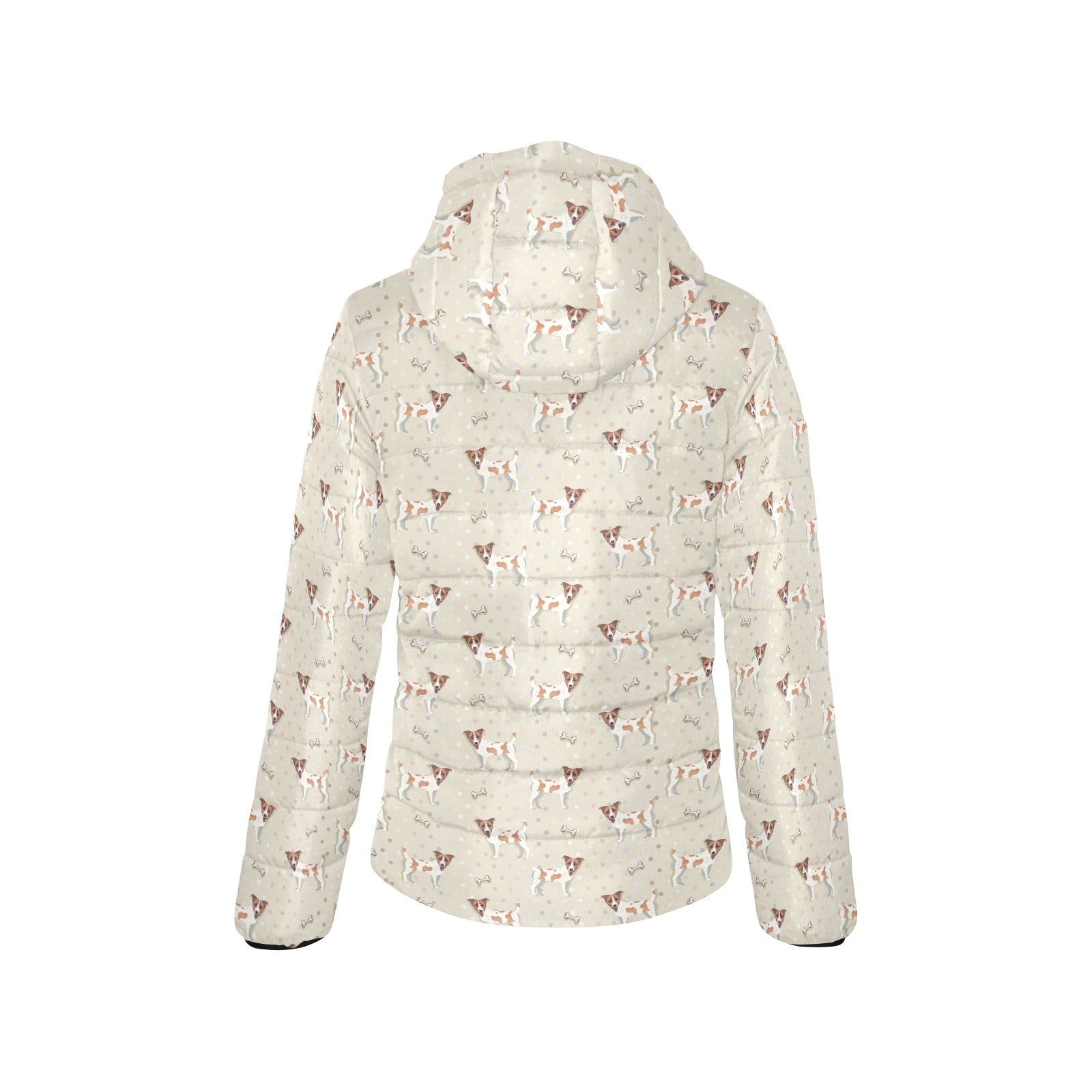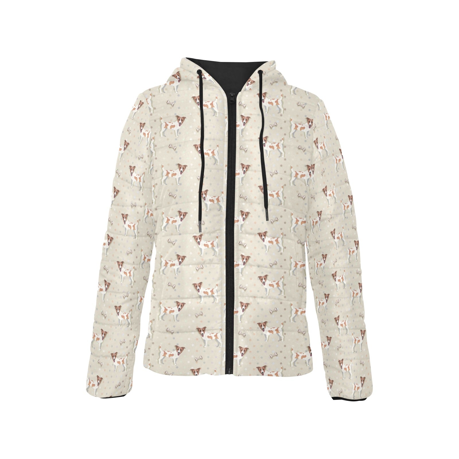 Jack Russel Pattern Print Design 02 Women's Padded Hooded Jacket