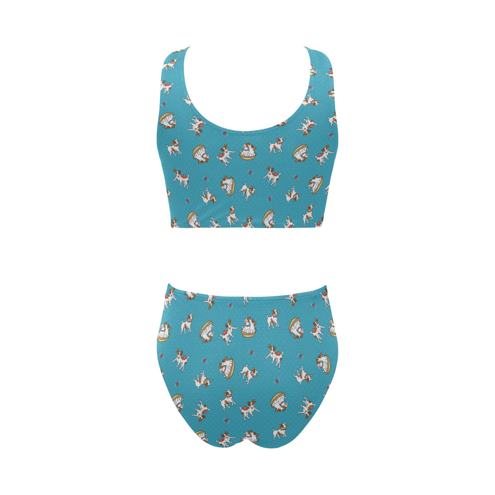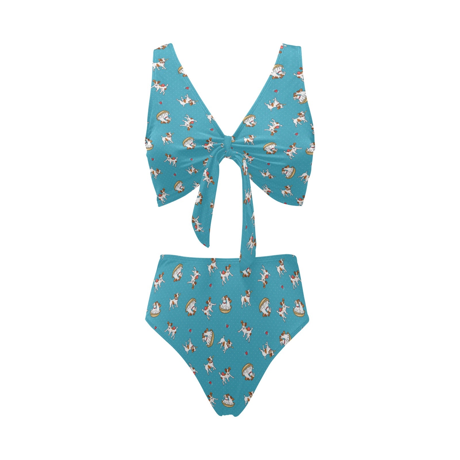Jack Russel Pattern Print Design 03 Chest Bowknot High Waisted Bikini Swimsuit