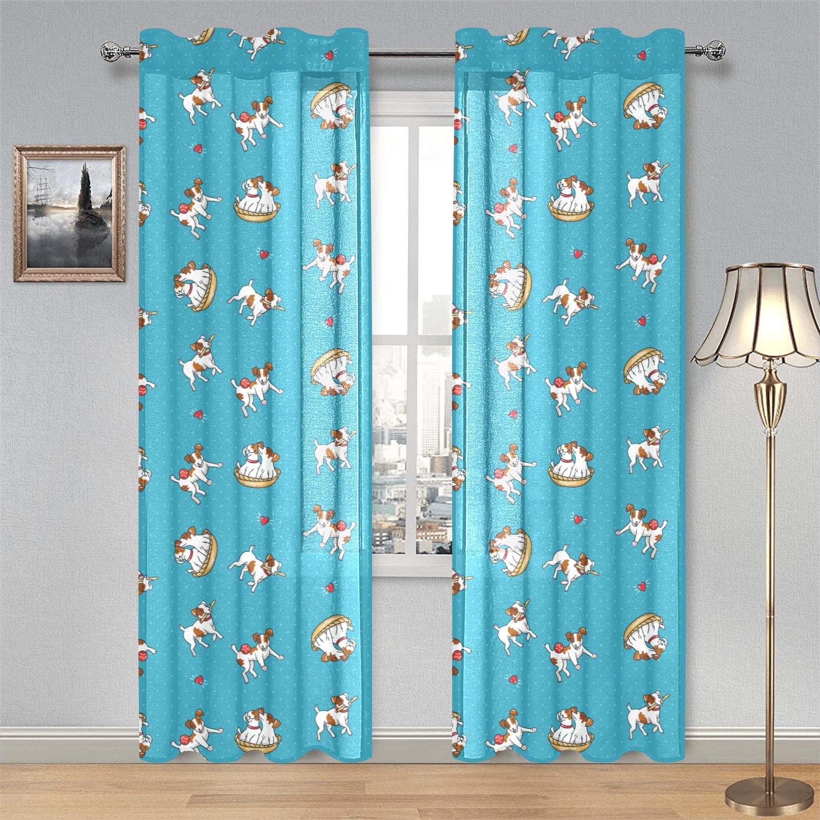 Jack Russel Pattern Print Design 03 Gauze Curtain