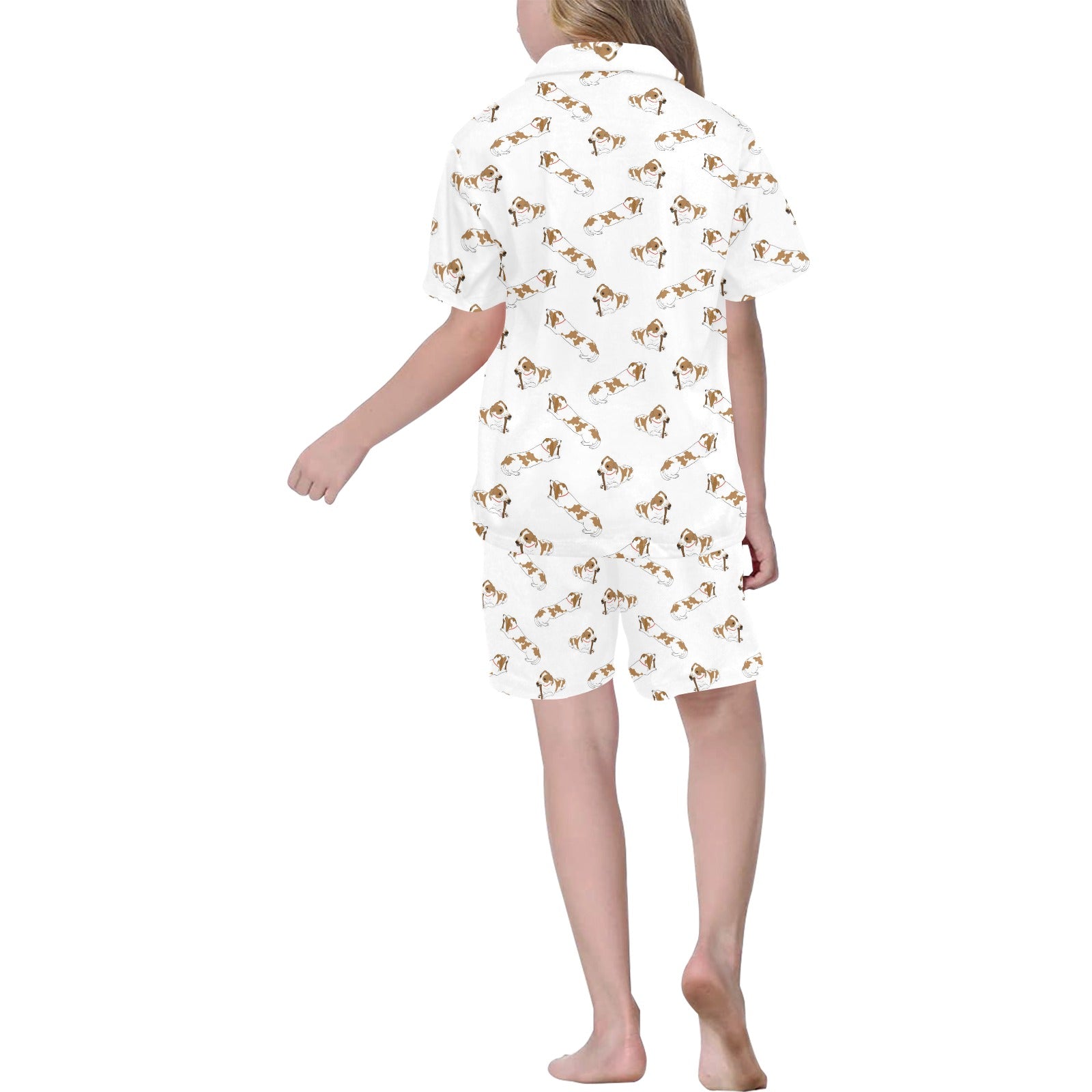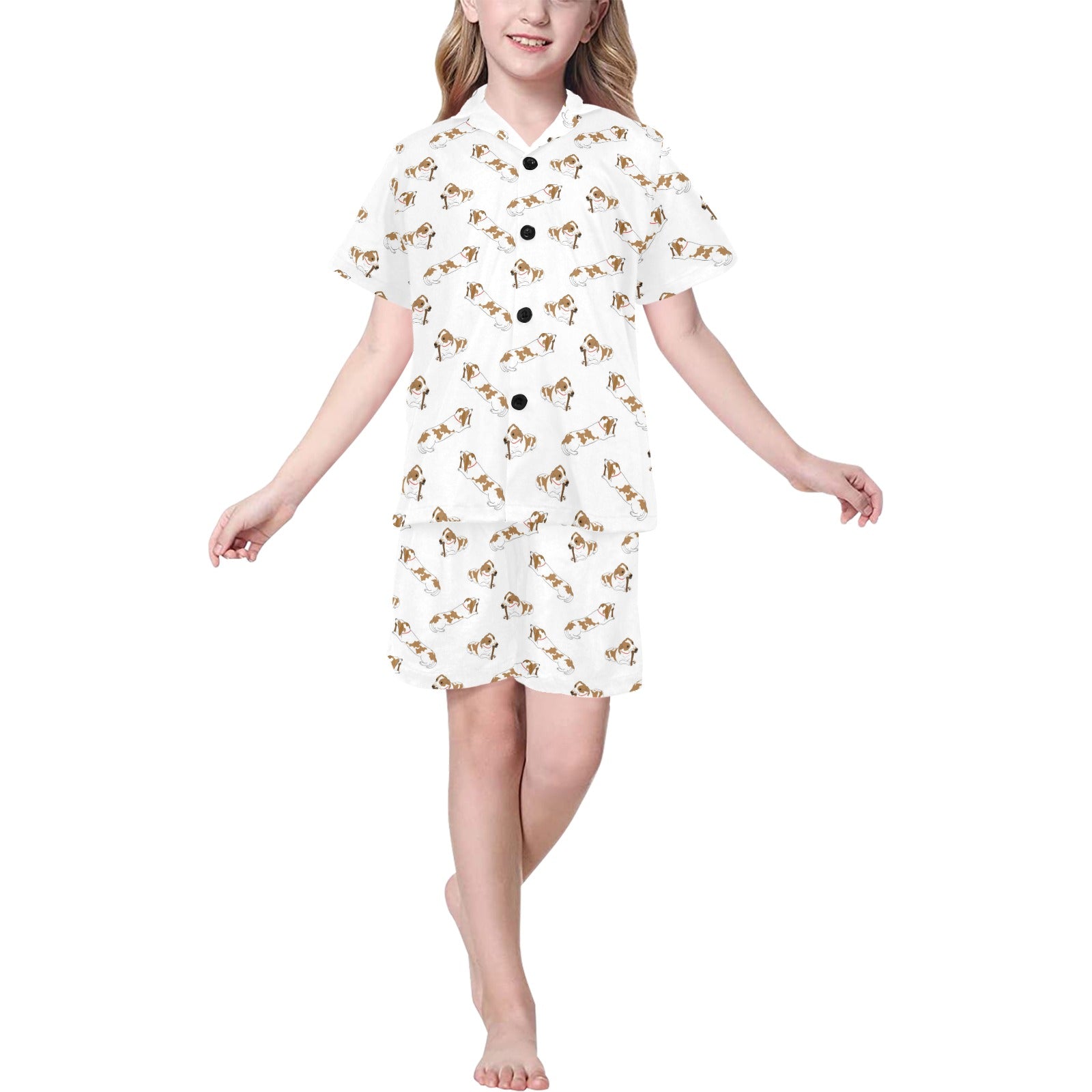 Jack Russel Pattern Print Design 04 Kids' Boys' Girls' V-Neck Short Pajama Set