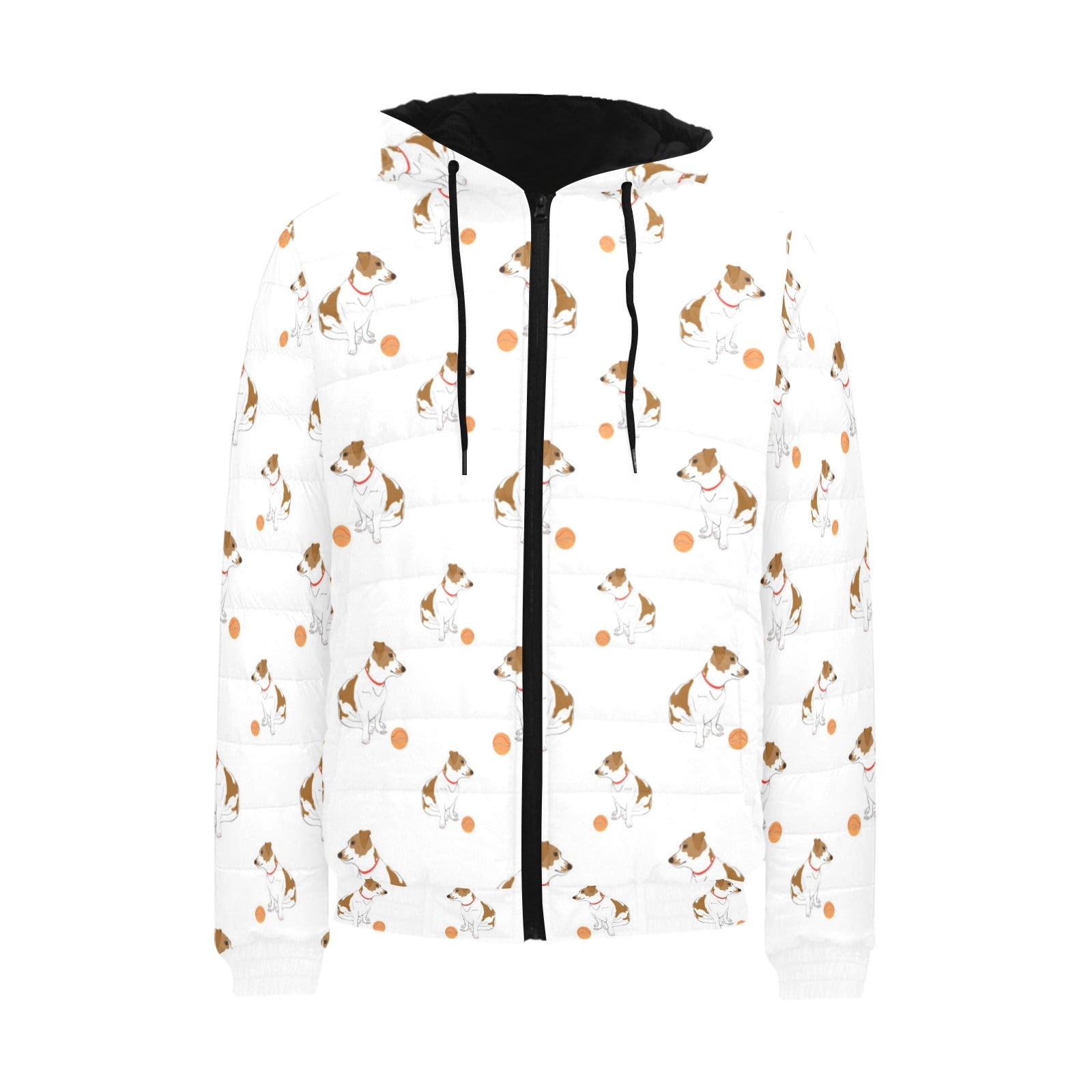 Jack Russel Pattern Print Design 05 Men's Padded Hooded Jacket