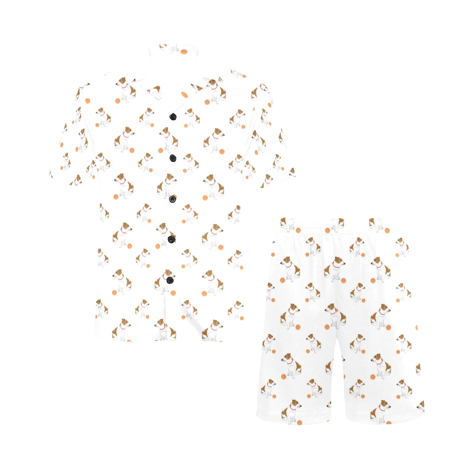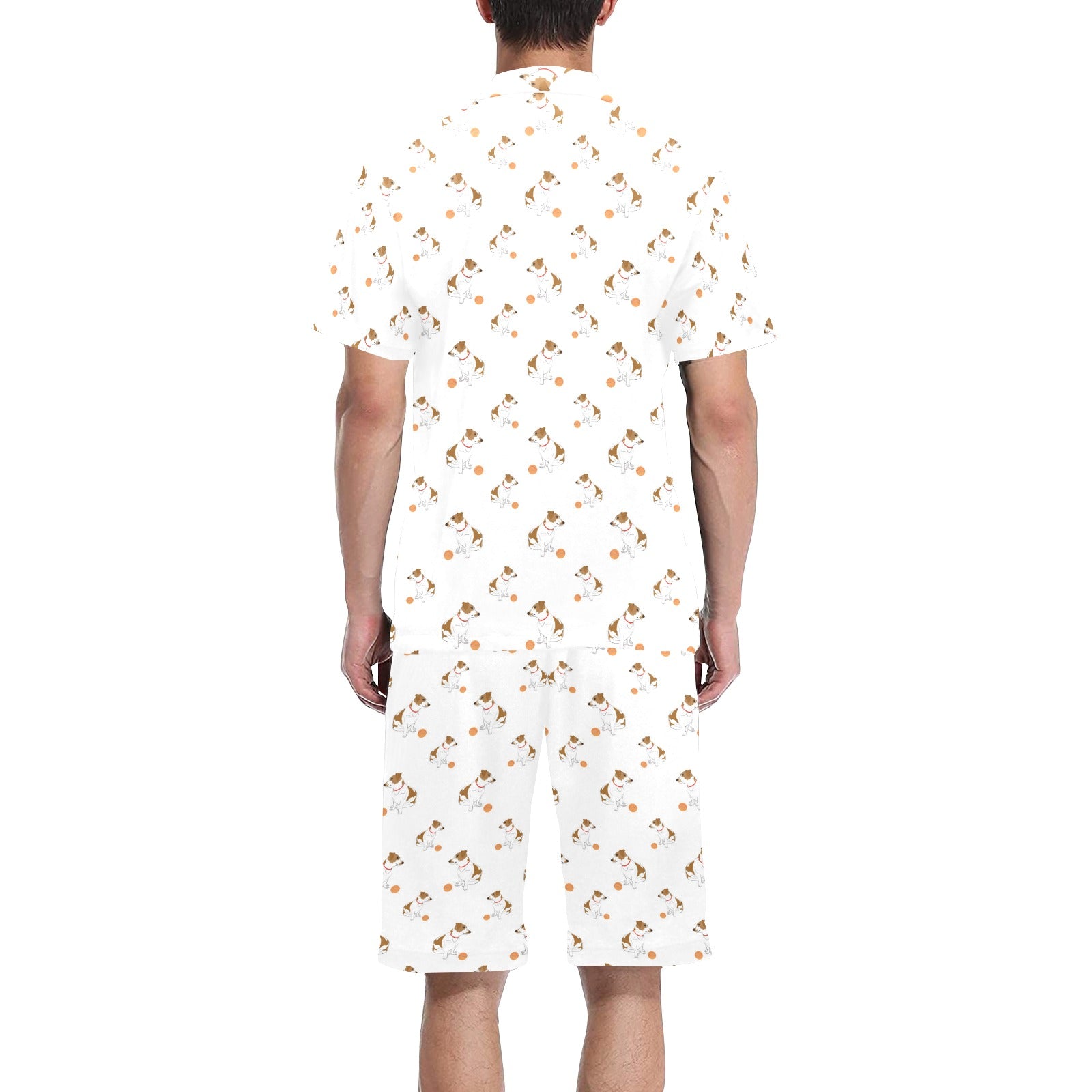 Jack Russel Pattern Print Design 05 Men's V-Neck Short Pajama Set