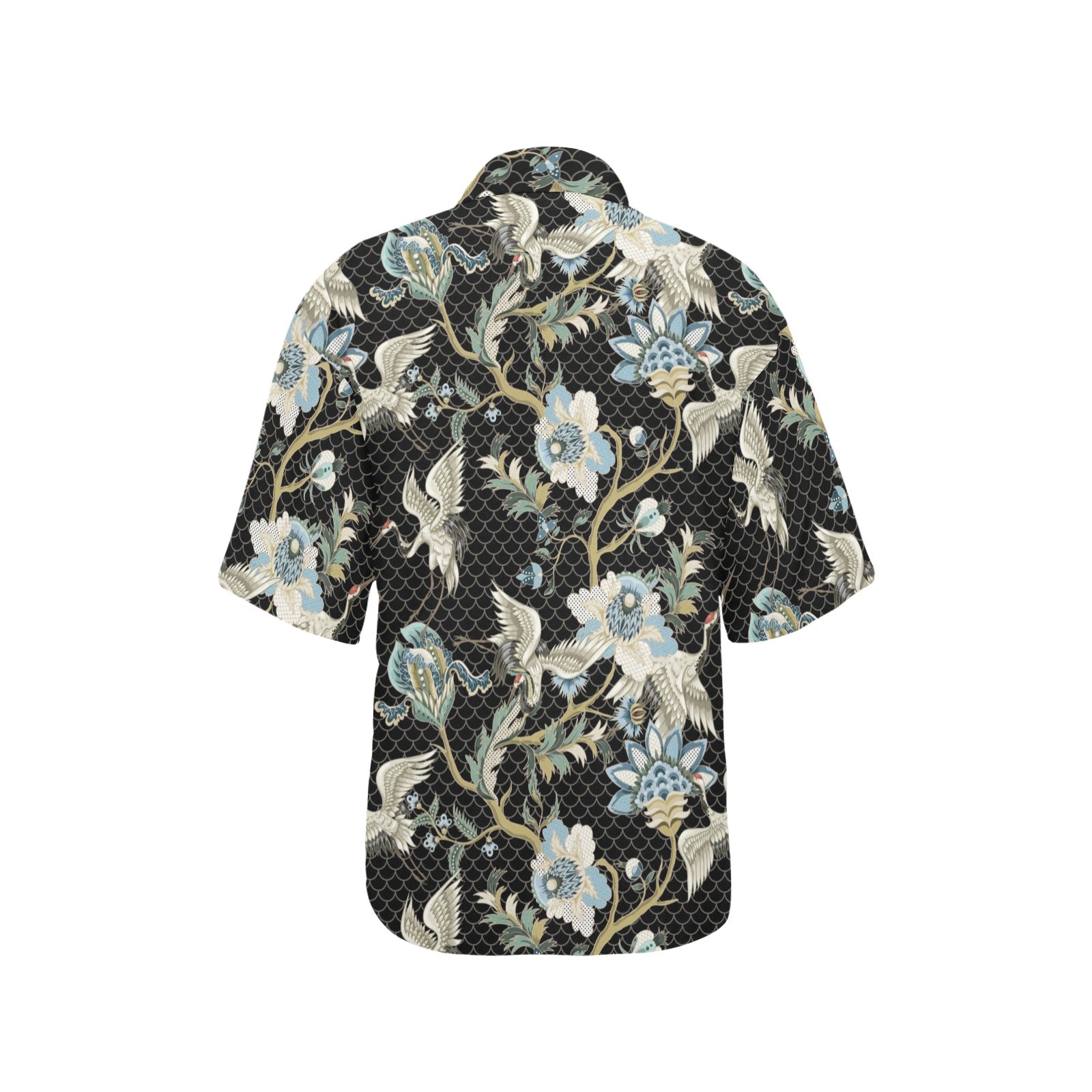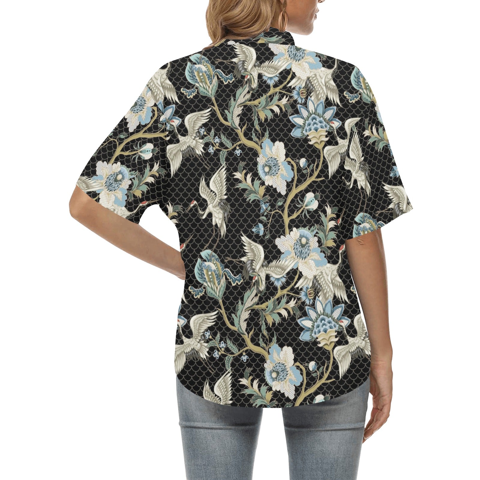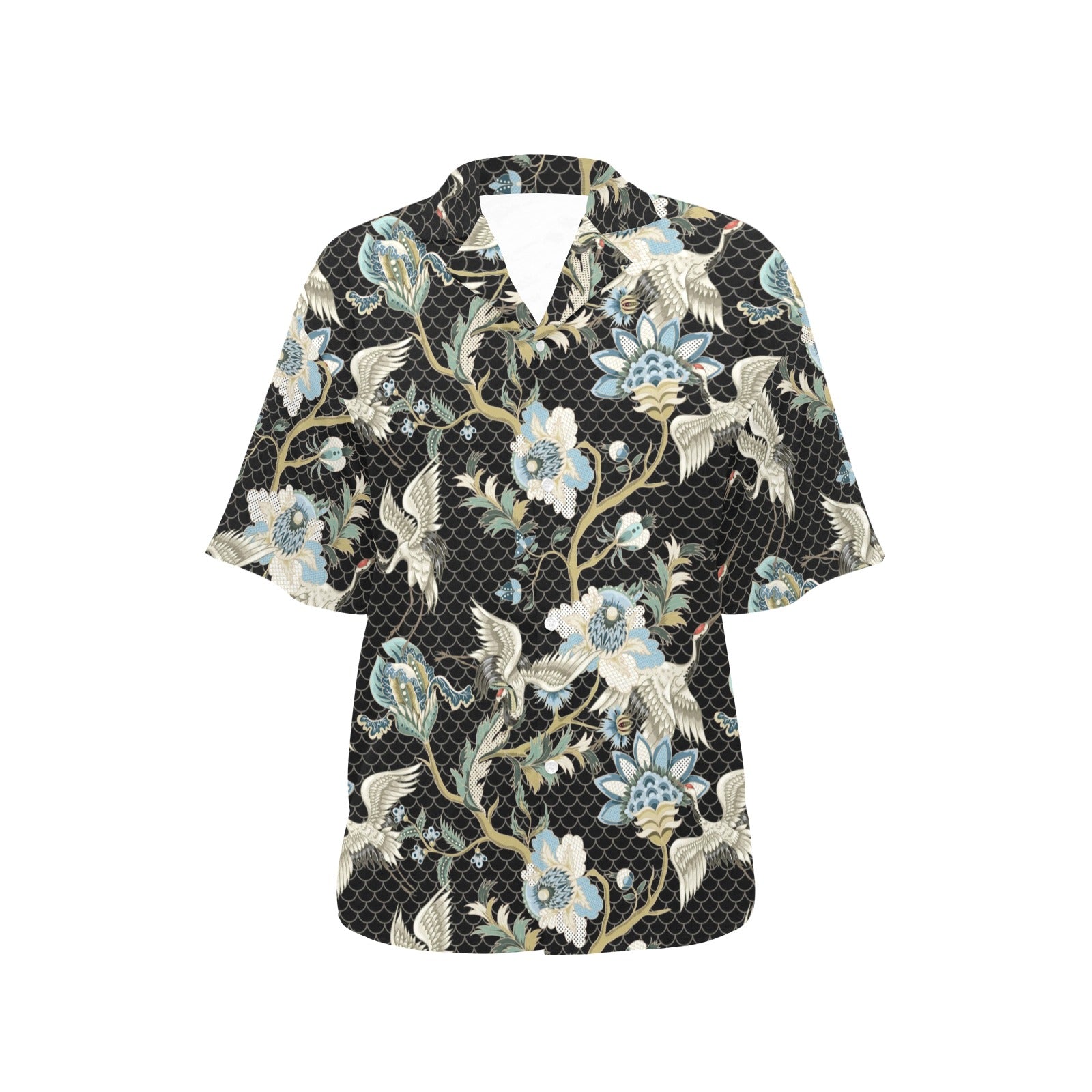 Japanese crane ornament elements Women's All Over Print Hawaiian Shirt