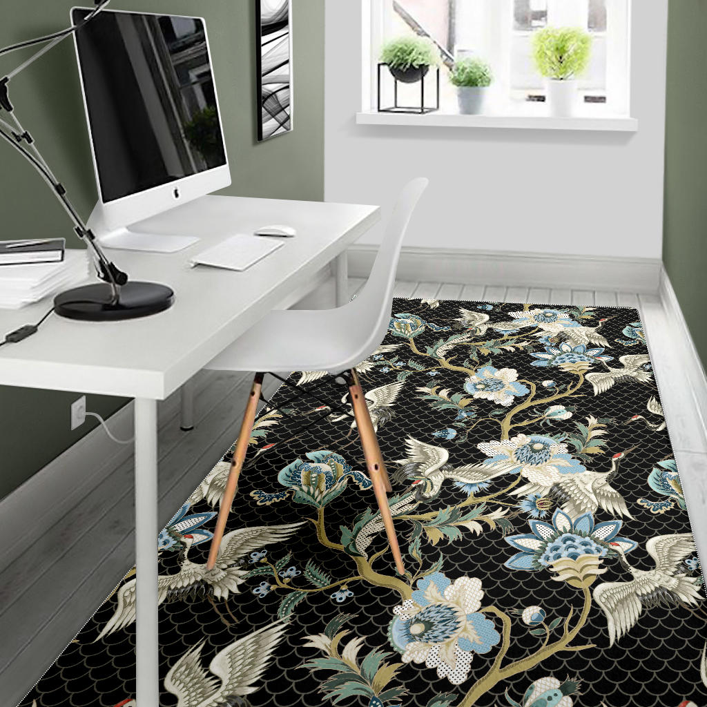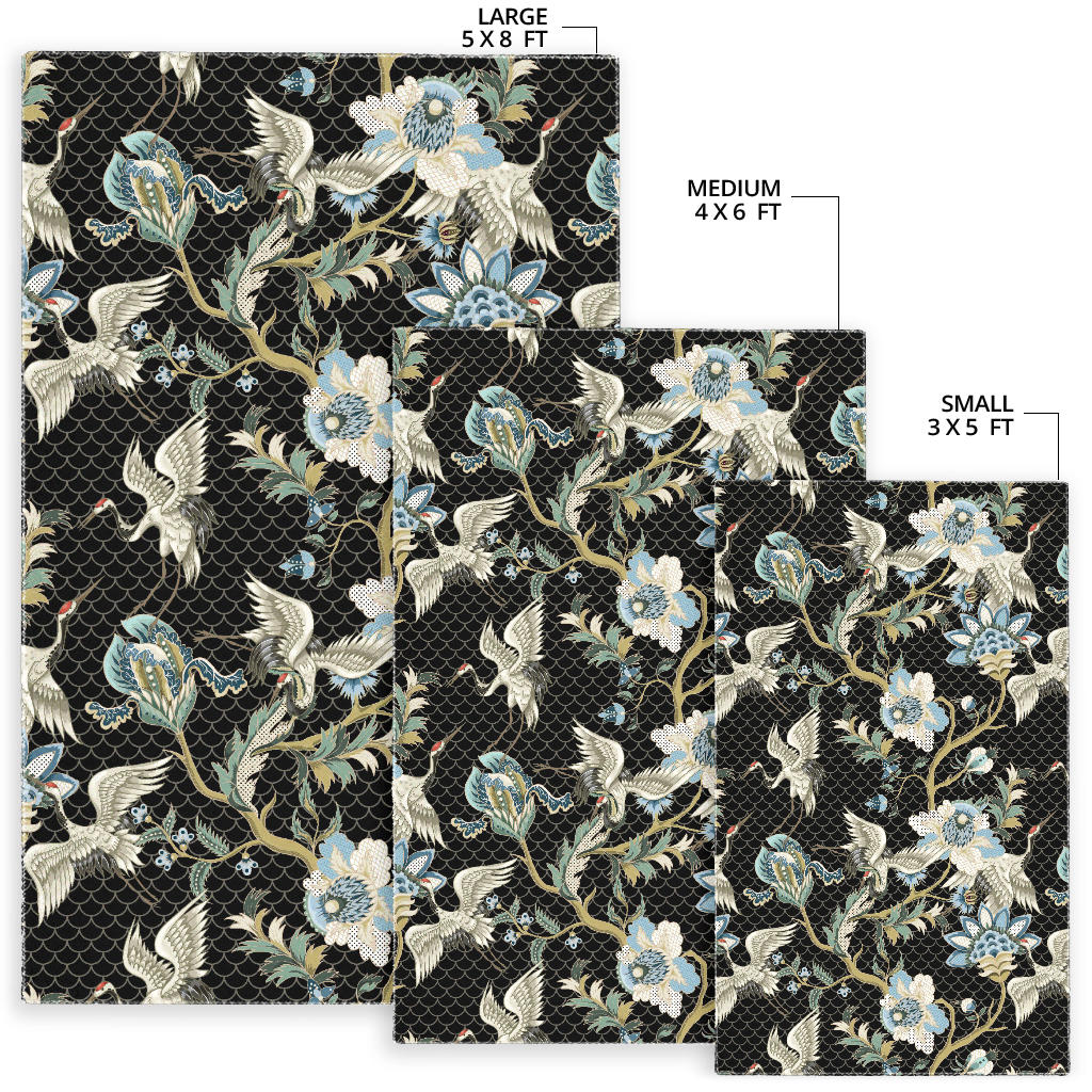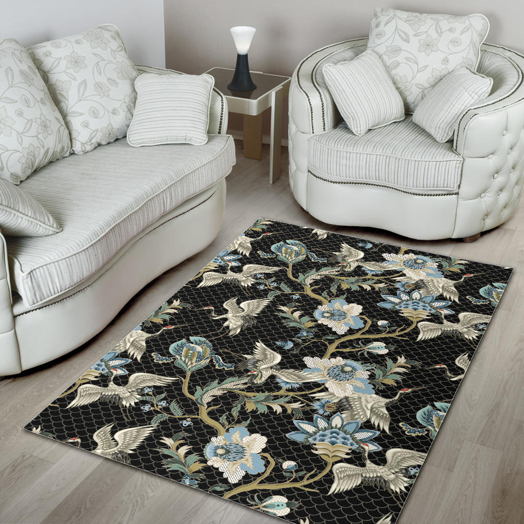 Japanese crane ornament elements Area Rug is a uniqued design and limited item. It made to order, hand printed, and sewn with love in our factory.
