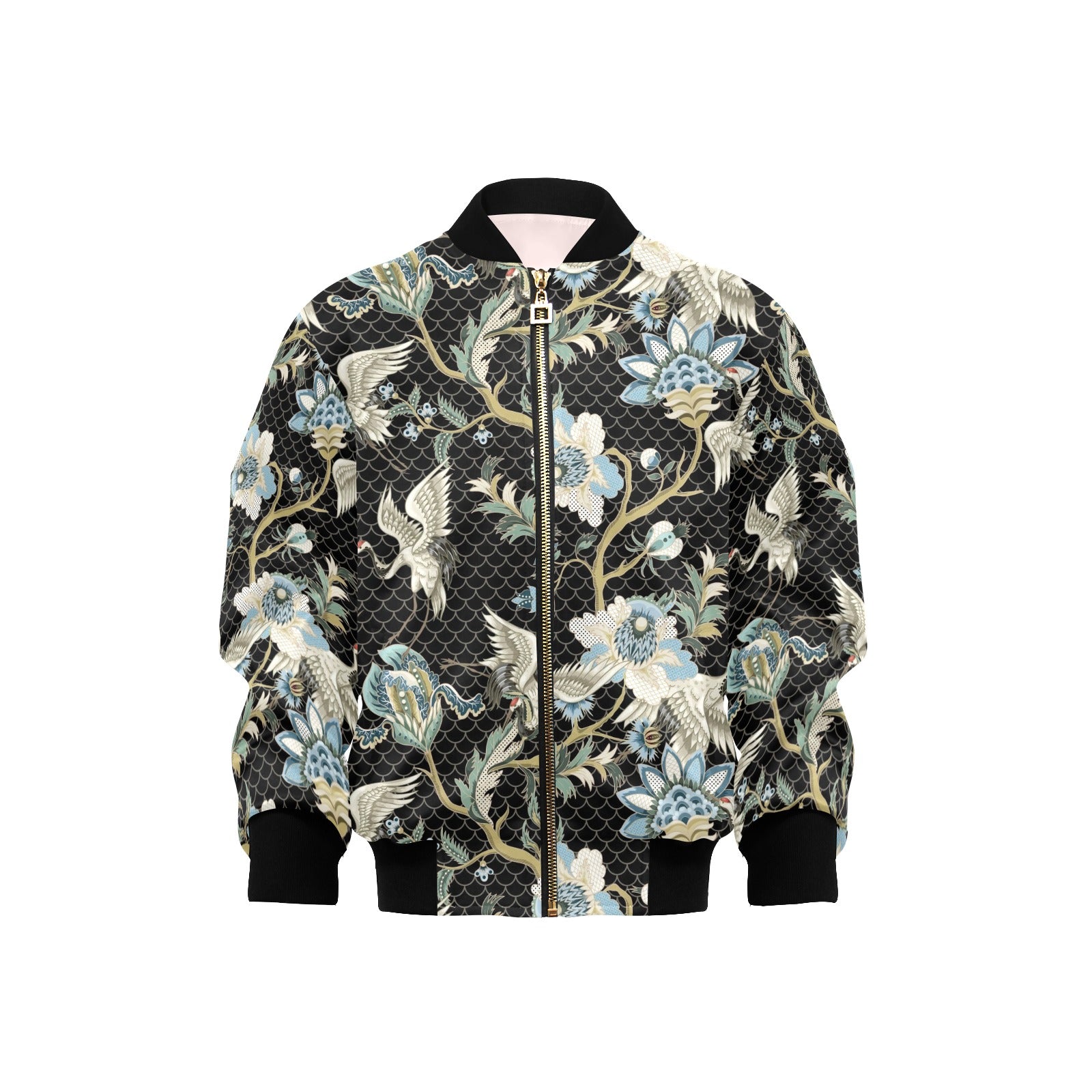 Japanese crane ornament elements Kids' Boys' Girls' Bomber Jacket