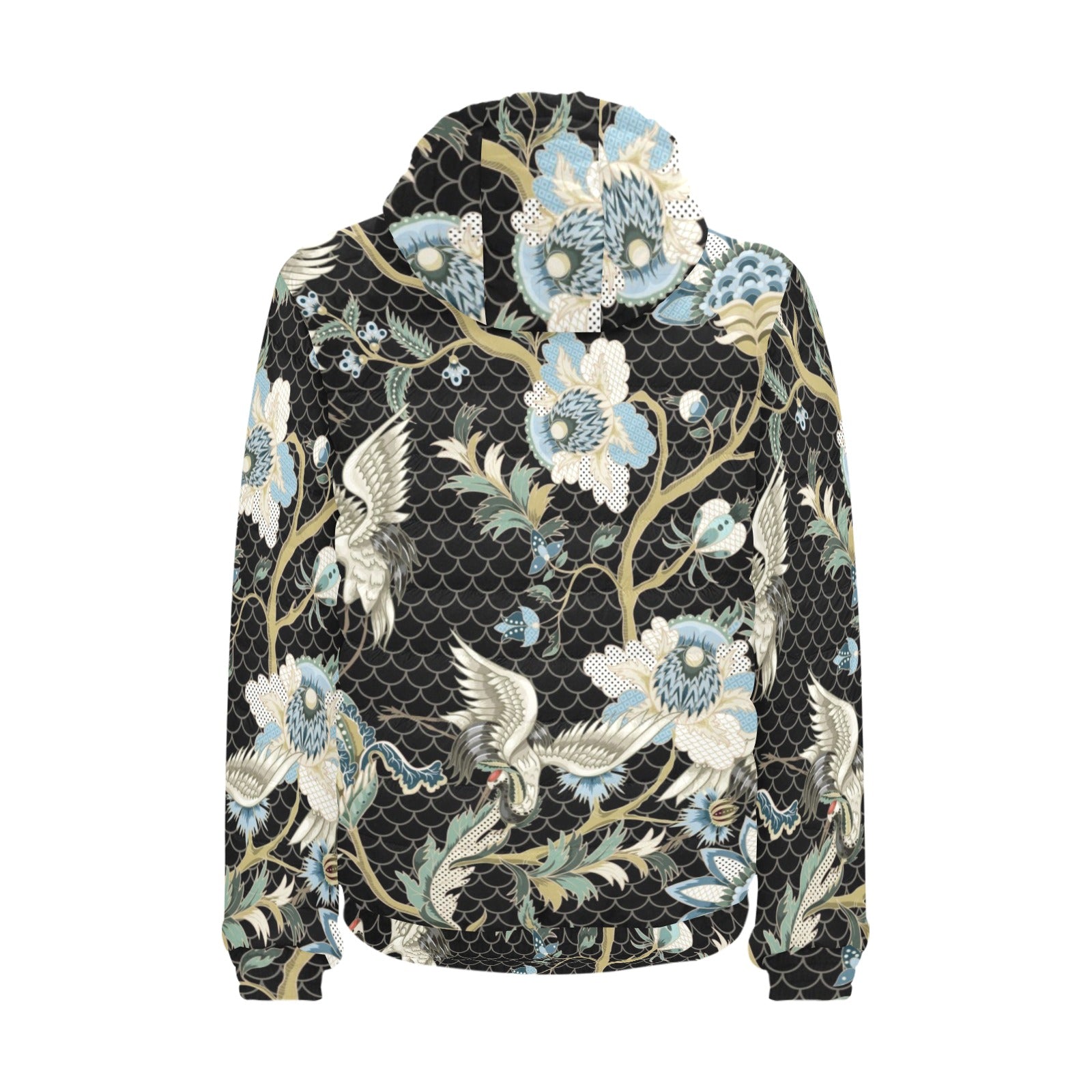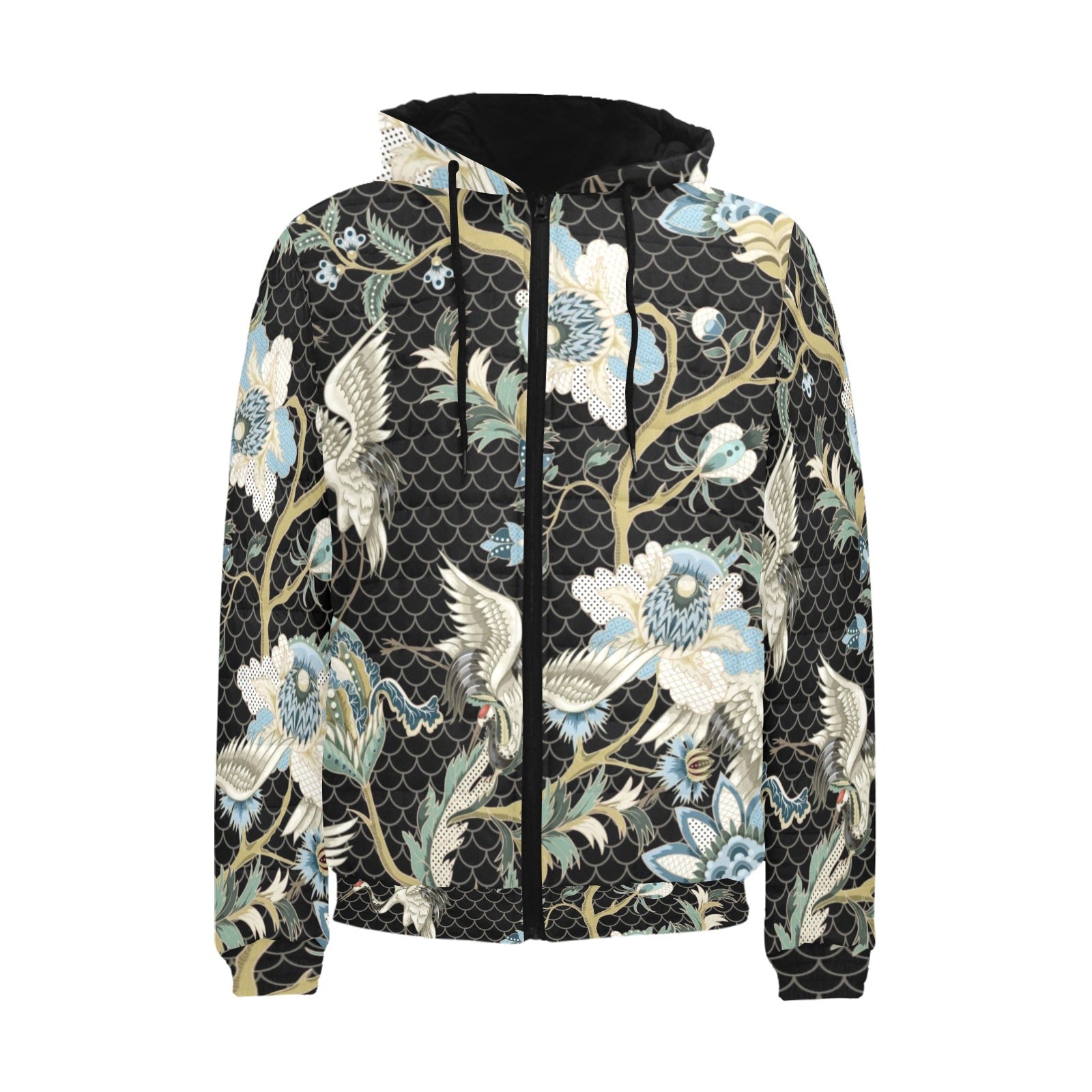 Japanese crane ornament elements Men's Padded Hooded Jacket