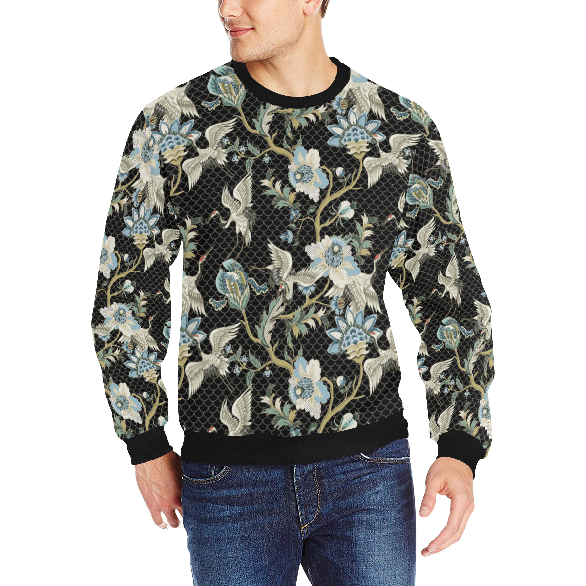 Japanese crane ornament elements Men's Crew Neck Sweatshirt is a uniqued design and limited item. It made to order, hand printed, and sewn with love in our factory.
