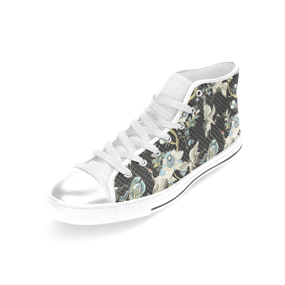 Japanese crane ornament elements Women's High Top Canvas Shoes White